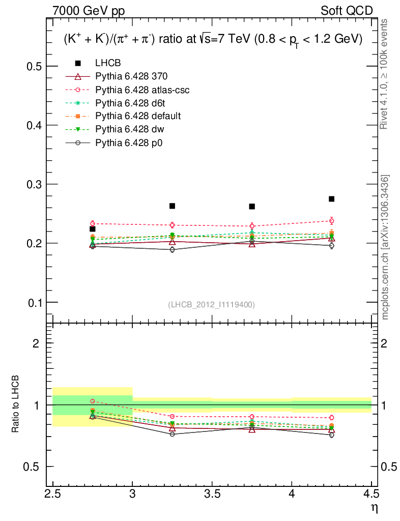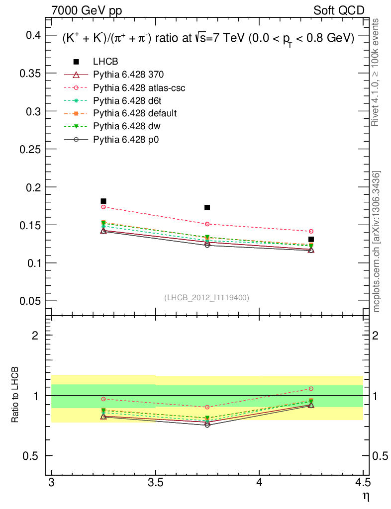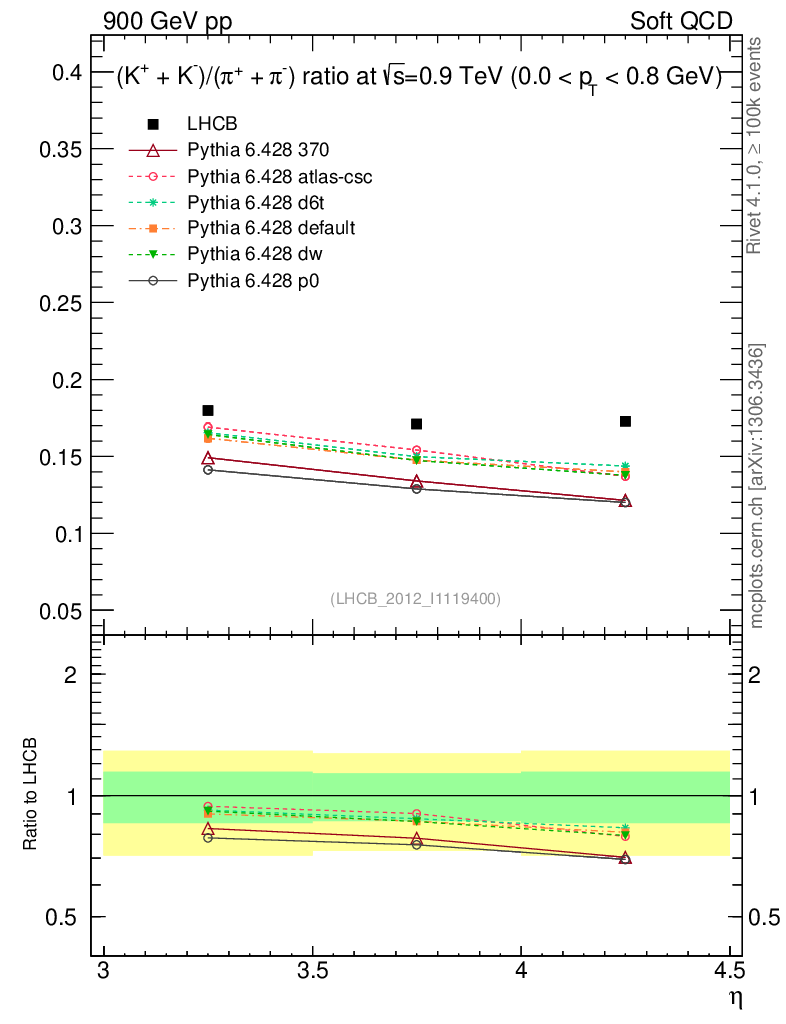 Soft QCD (inelastic) : Identified Particles : Ratios : (K-+K+)/(π-+π+) vs |y|