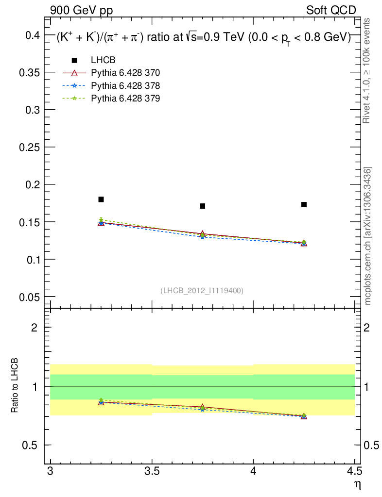Soft QCD (inelastic) : Identified Particles : Ratios : (K-+K+)/(π-+π+) vs |y|