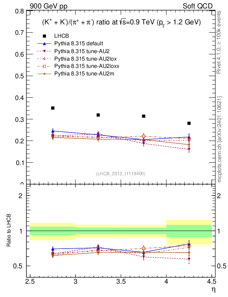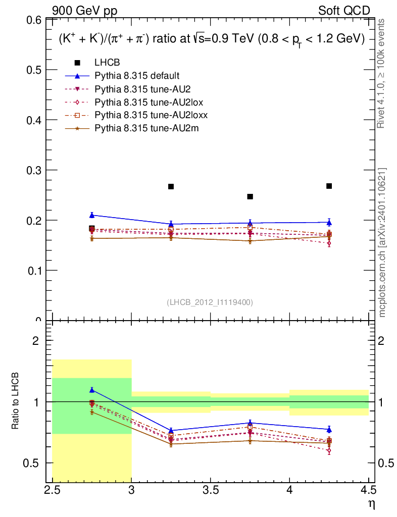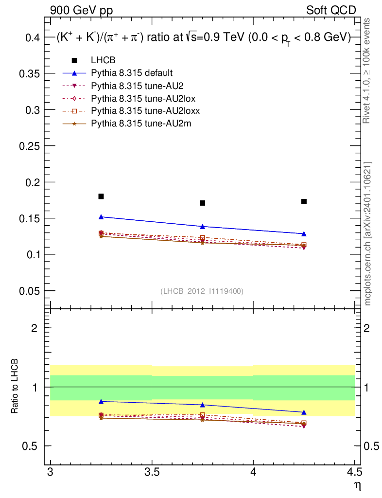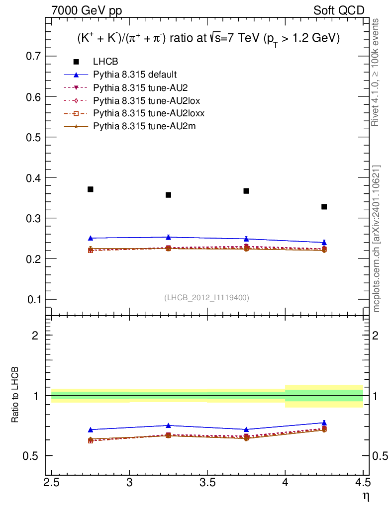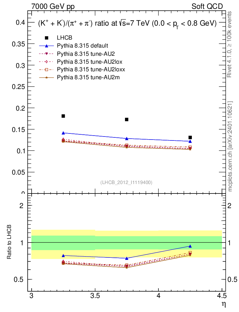 Soft QCD (inelastic) : Identified Particles : Ratios : (K-+K+)/(π-+π+) vs |y|
