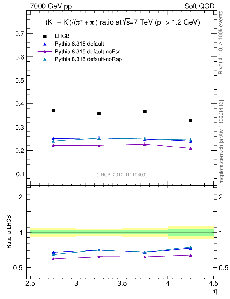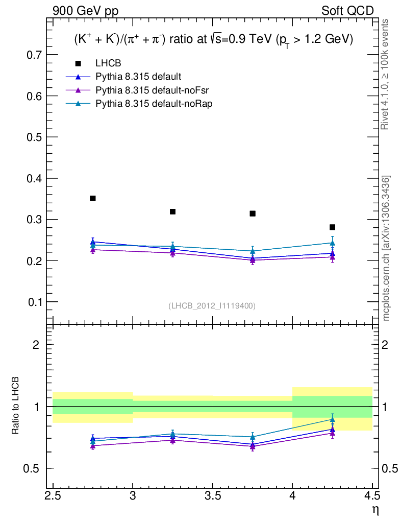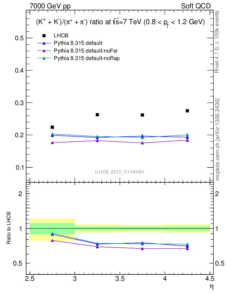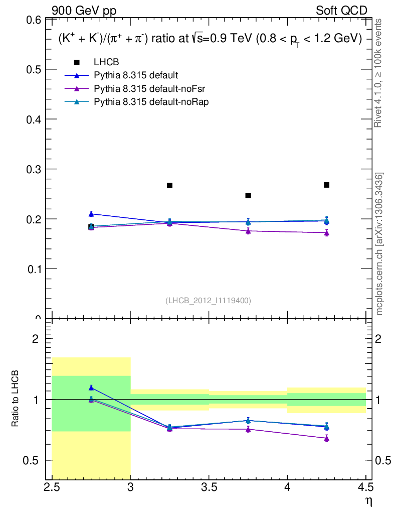 Soft QCD (inelastic) : Identified Particles : Ratios : (K-+K+)/(π-+π+) vs |y|