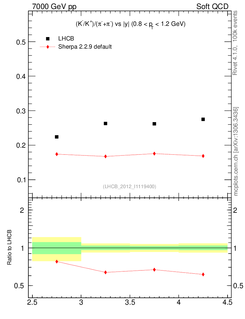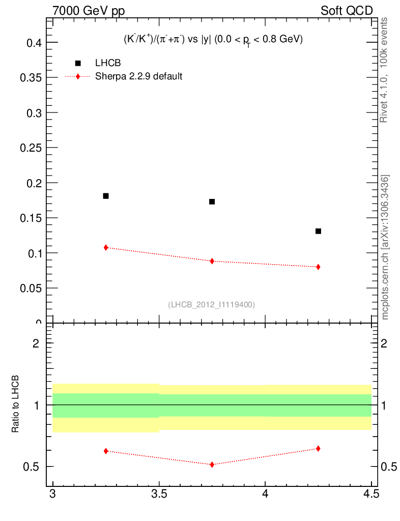 Soft QCD (inelastic) : Identified Particles : Ratios : (K-+K+)/(π-+π+) vs |y|