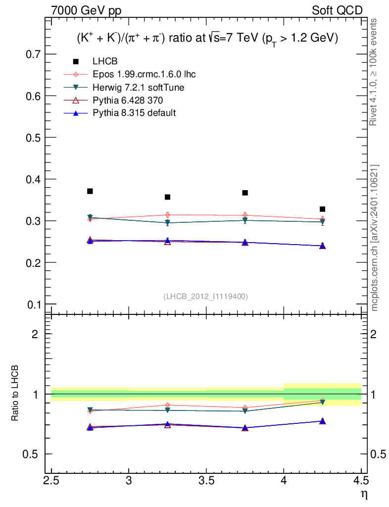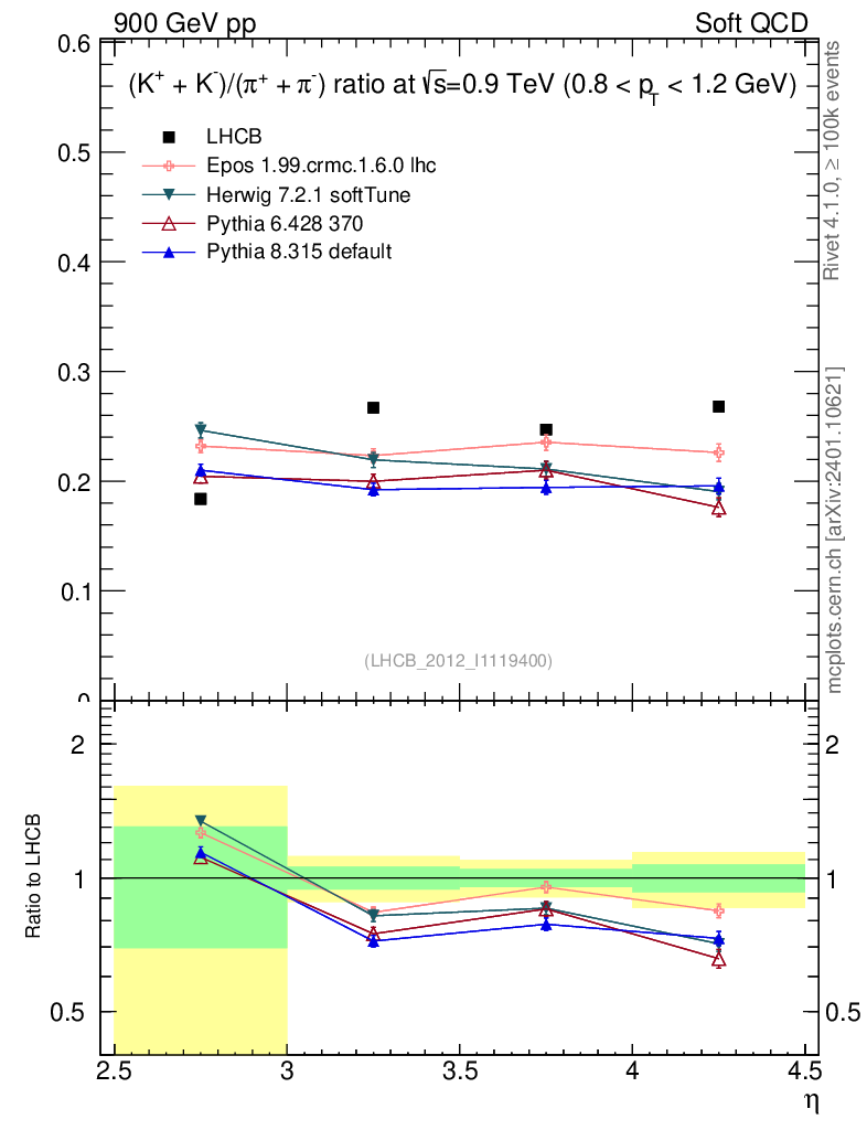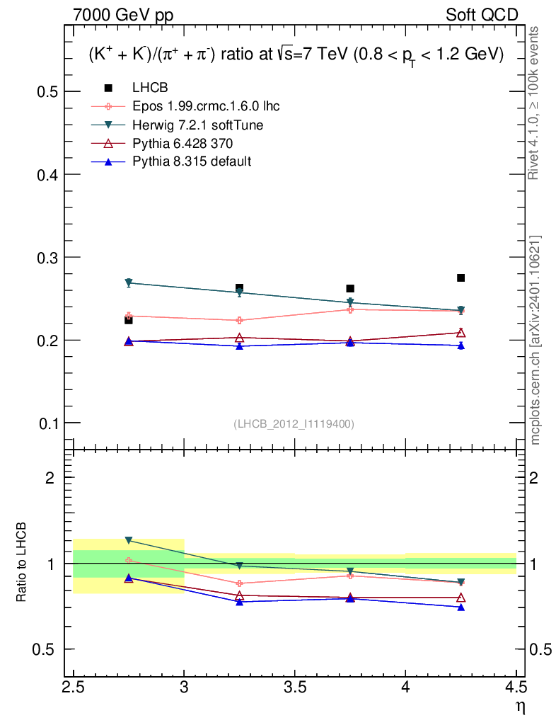 Soft QCD (inelastic) : Identified Particles : Ratios : (K-+K+)/(π-+π+) vs |y|