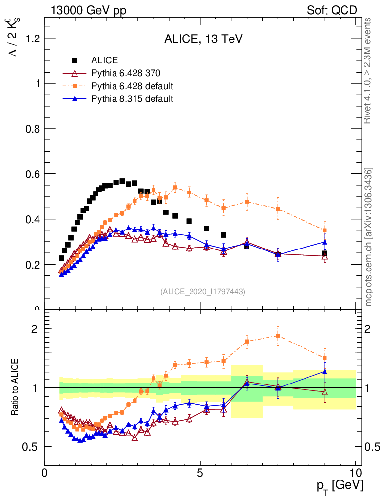 Soft QCD (inelastic) : Identified Particles : Ratios : Λ/K0S vs pT