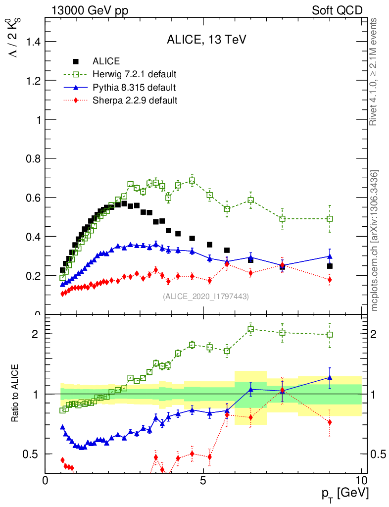 Soft QCD (inelastic) : Identified Particles : Ratios : Λ/K0S vs pT