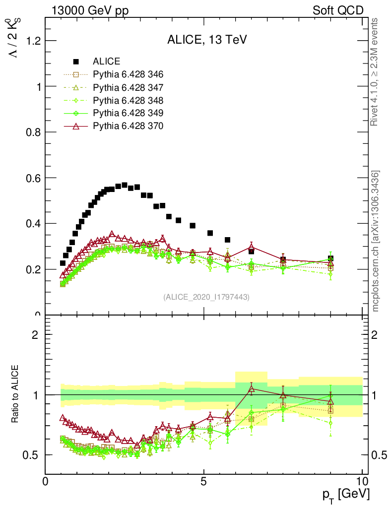 Soft QCD (inelastic) : Identified Particles : Ratios : Λ/K0S vs pT