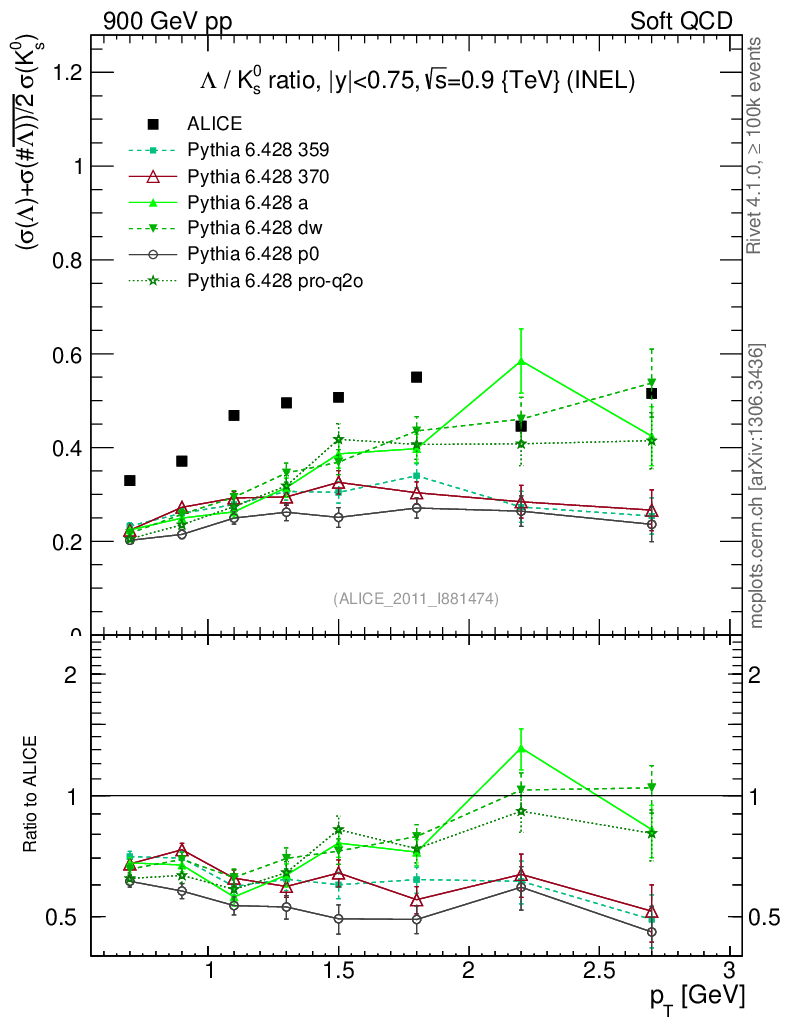 Soft QCD (inelastic) : Identified Particles : Ratios : Λ/K0S vs pT