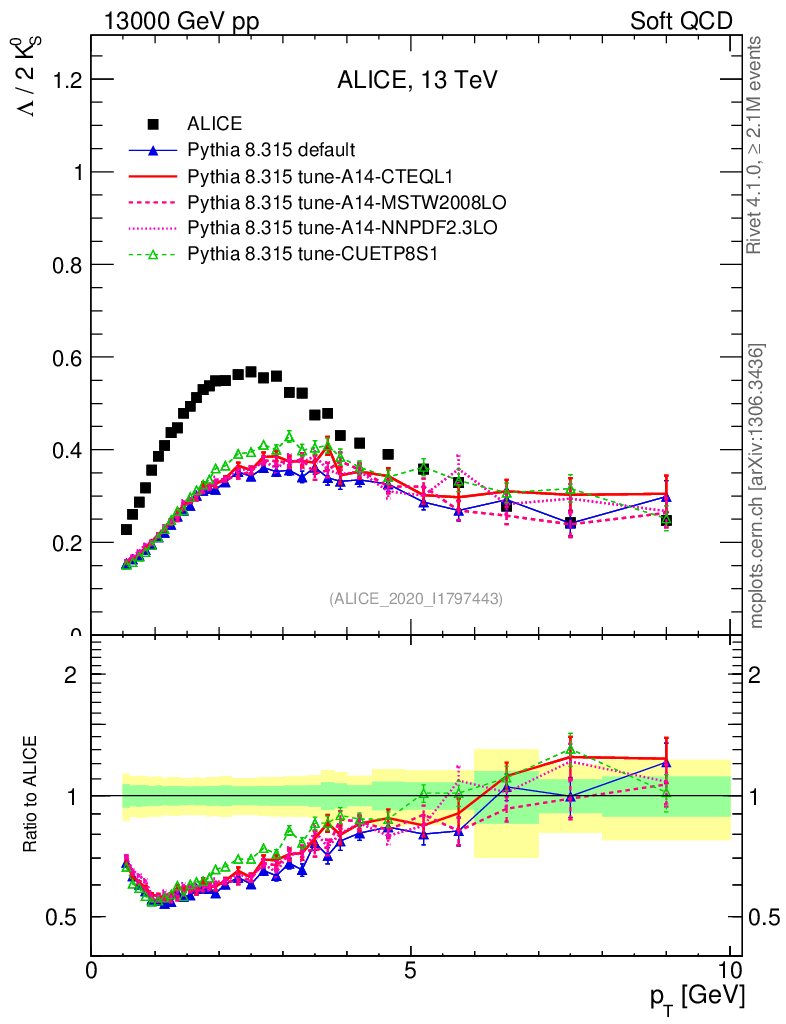 Soft QCD (inelastic) : Identified Particles : Ratios : Λ/K0S vs pT