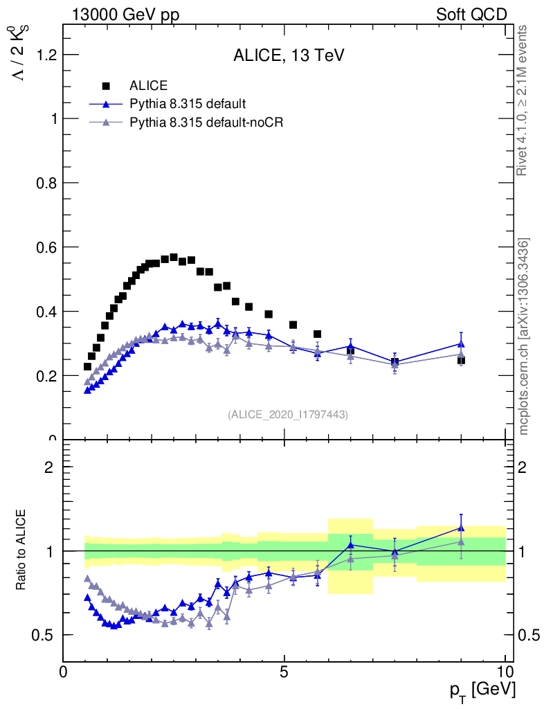 Soft QCD (inelastic) : Identified Particles : Ratios : Λ/K0S vs pT
