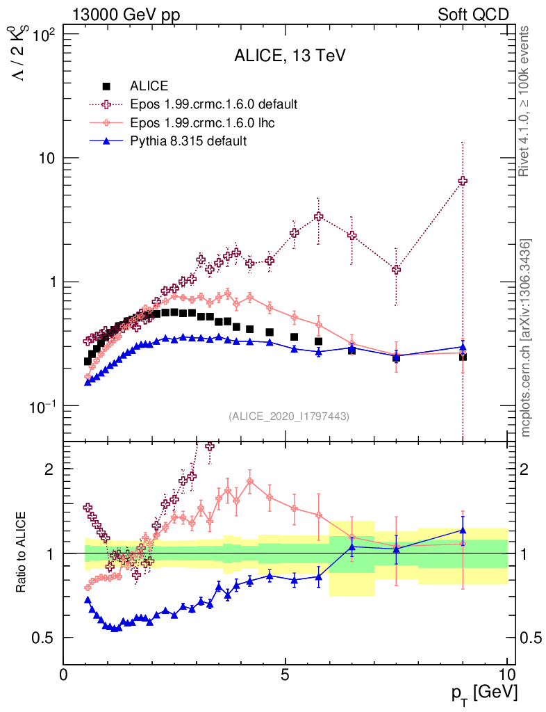Soft QCD (inelastic) : Identified Particles : Ratios : Λ/K0S vs pT