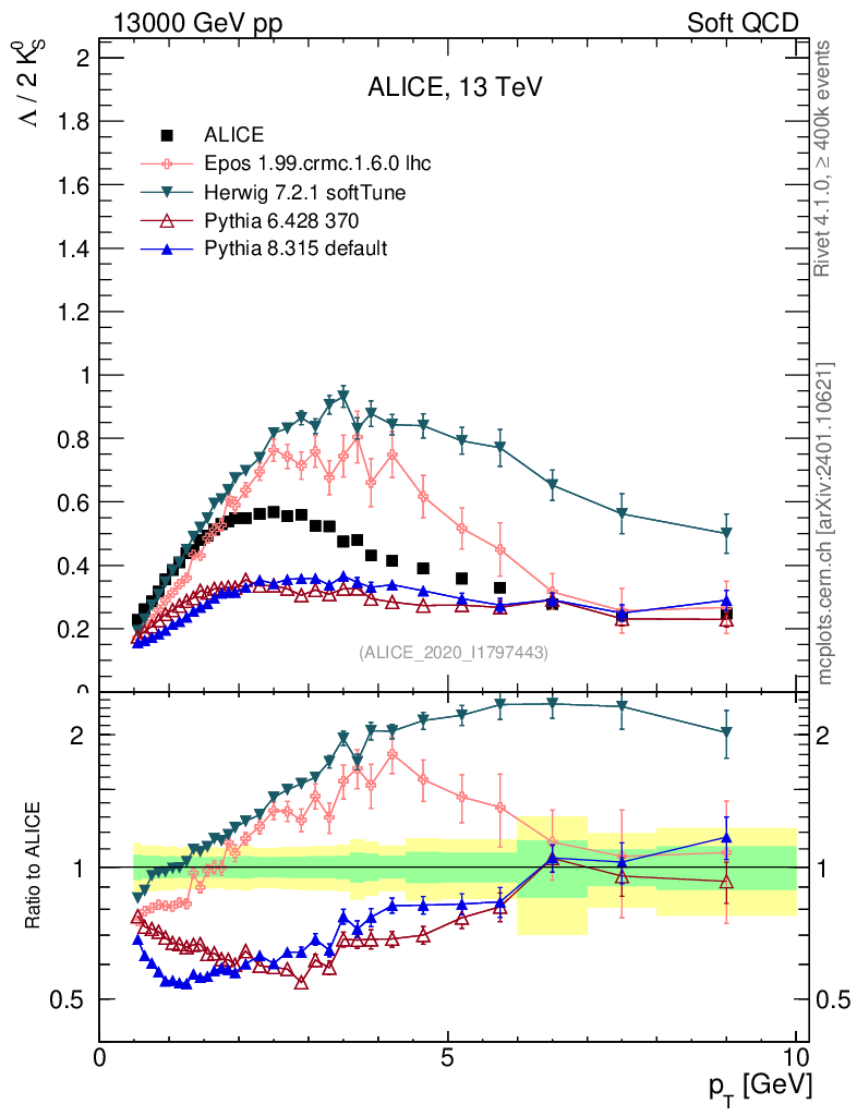 Soft QCD (inelastic) : Identified Particles : Ratios : Λ/K0S vs pT