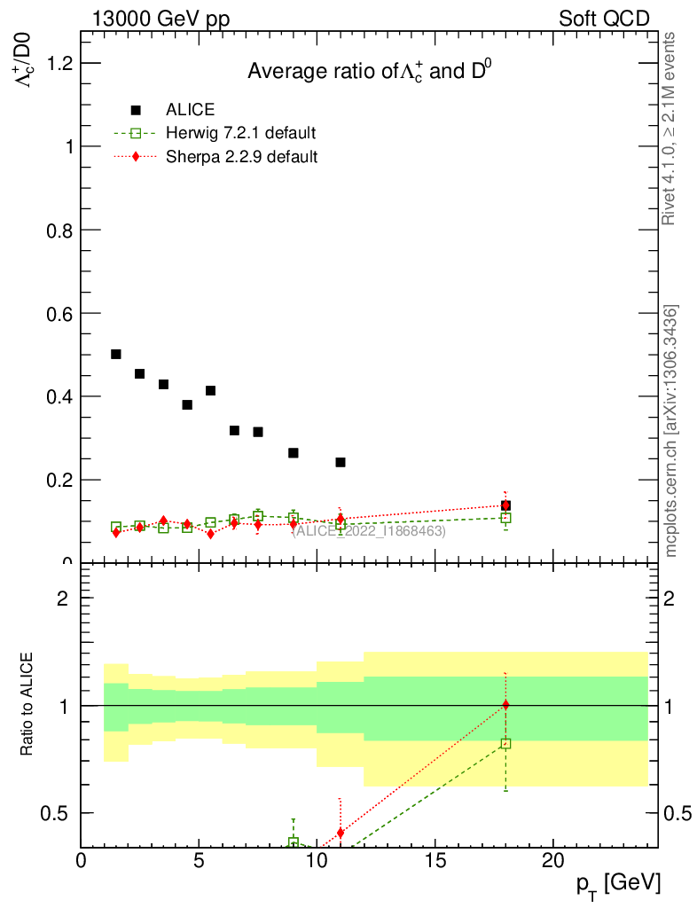 Soft QCD (inelastic) : Identified Particles : Ratios : Λc+/D0 vs pT