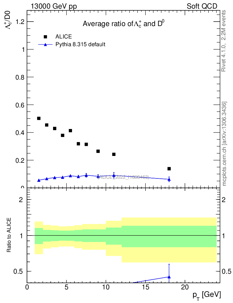 Soft QCD (inelastic) : Identified Particles : Ratios : Λc+/D0 vs pT