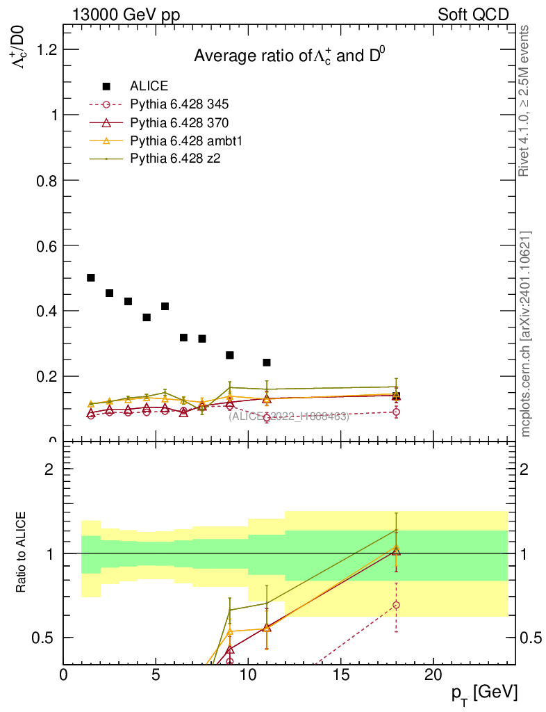 Soft QCD (inelastic) : Identified Particles : Ratios : Λc+/D0 vs pT