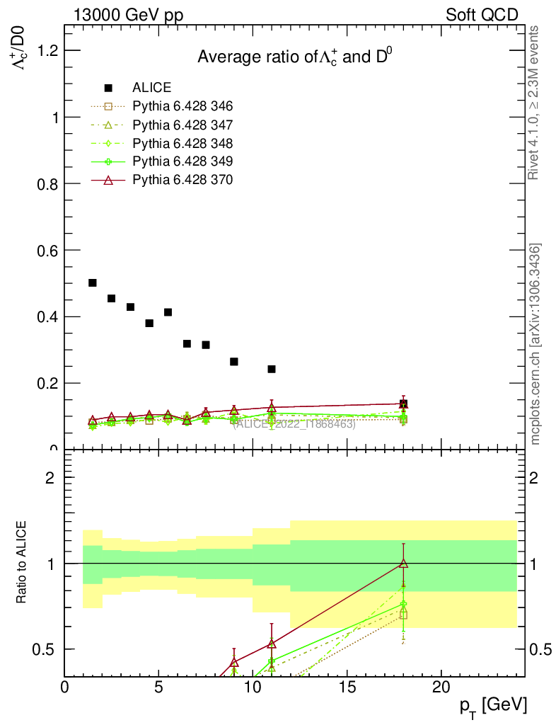 Soft QCD (inelastic) : Identified Particles : Ratios : Λc+/D0 vs pT
