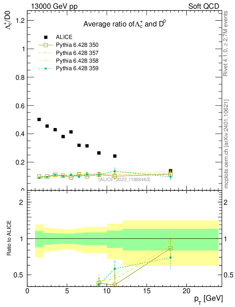 Soft QCD (inelastic) : Identified Particles : Ratios : Λc+/D0 vs pT