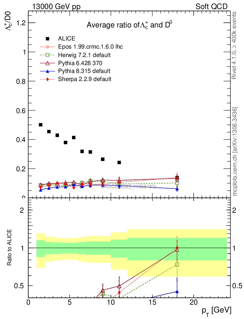 Soft QCD (inelastic) : Identified Particles : Ratios : Λc+/D0 vs pT