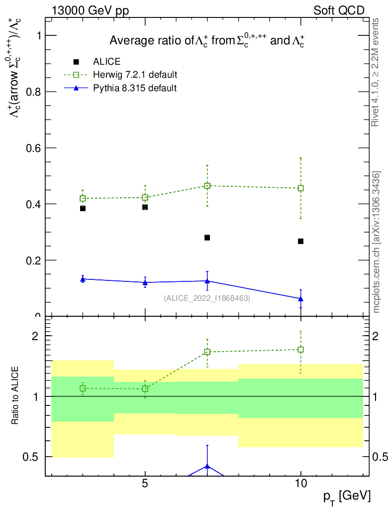 Soft QCD (inelastic) : Identified Particles : Ratios : Λc+ from Σc0,+,++/Λc+ vs pT