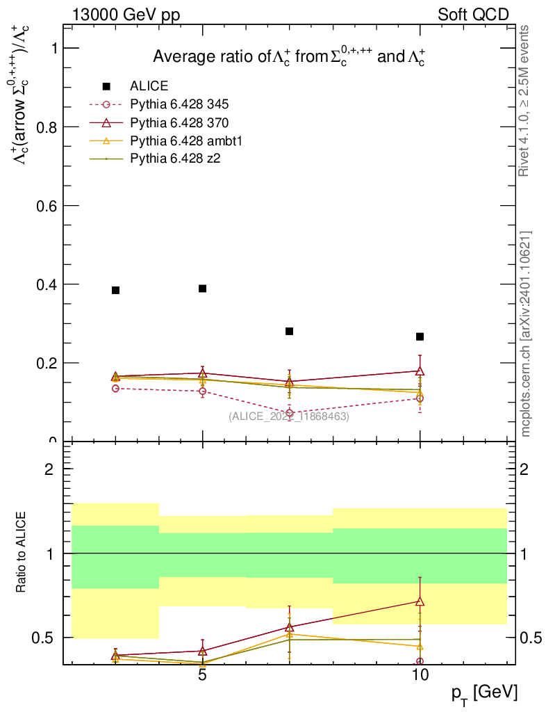 Soft QCD (inelastic) : Identified Particles : Ratios : Λc+ from Σc0,+,++/Λc+ vs pT