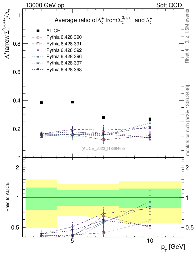 Soft QCD (inelastic) : Identified Particles : Ratios : Λc+ from Σc0,+,++/Λc+ vs pT
