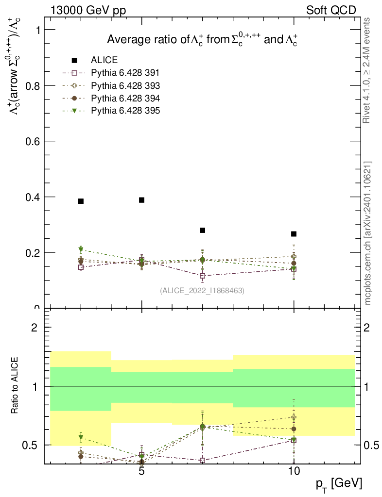 Soft QCD (inelastic) : Identified Particles : Ratios : Λc+ from Σc0,+,++/Λc+ vs pT