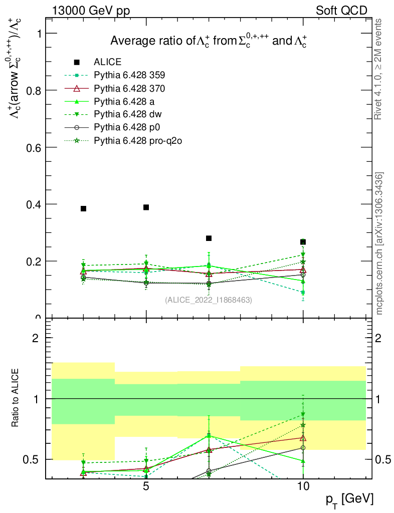 Soft QCD (inelastic) : Identified Particles : Ratios : Λc+ from Σc0,+,++/Λc+ vs pT