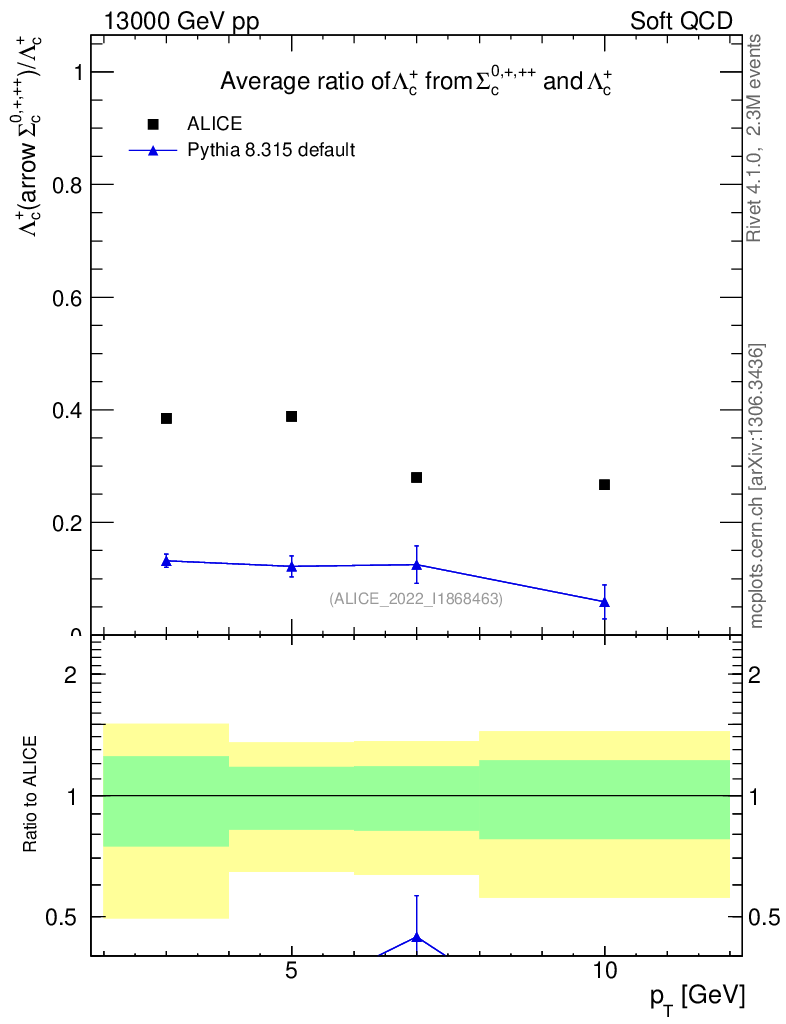 Soft QCD (inelastic) : Identified Particles : Ratios : Λc+ from Σc0,+,++/Λc+ vs pT