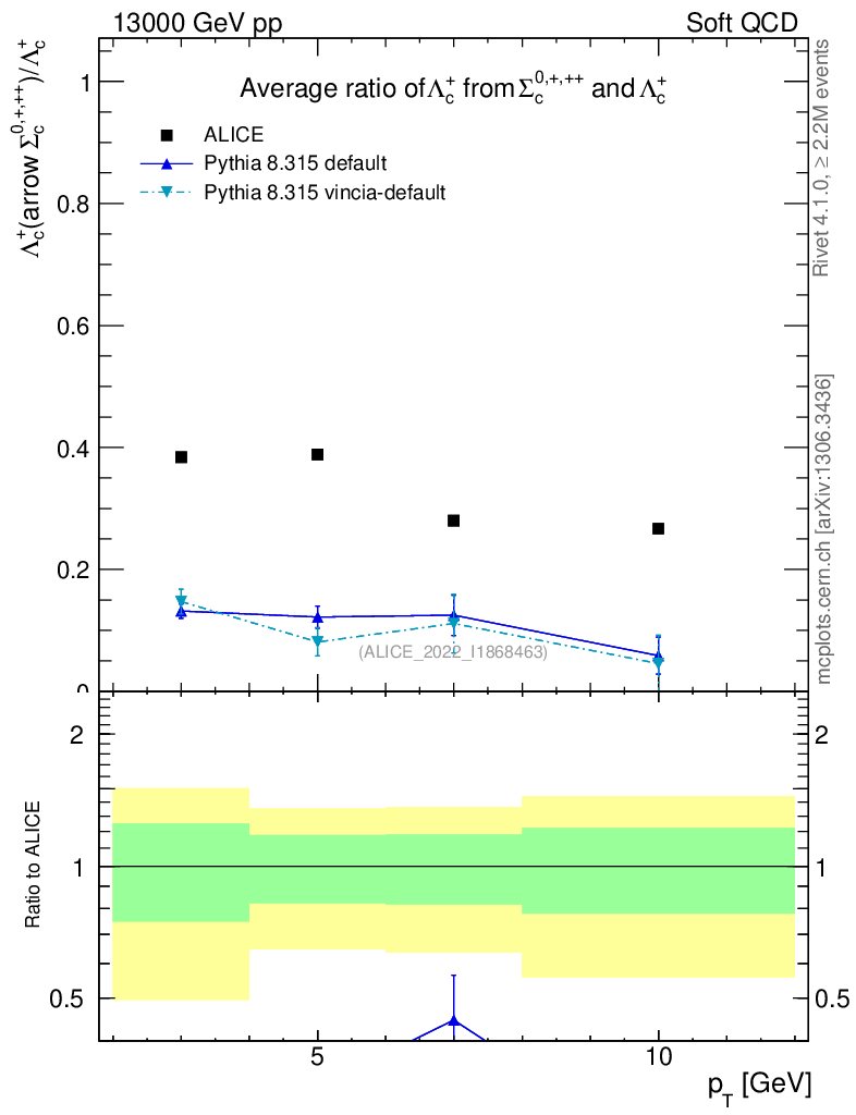 Soft QCD (inelastic) : Identified Particles : Ratios : Λc+ from Σc0,+,++/Λc+ vs pT
