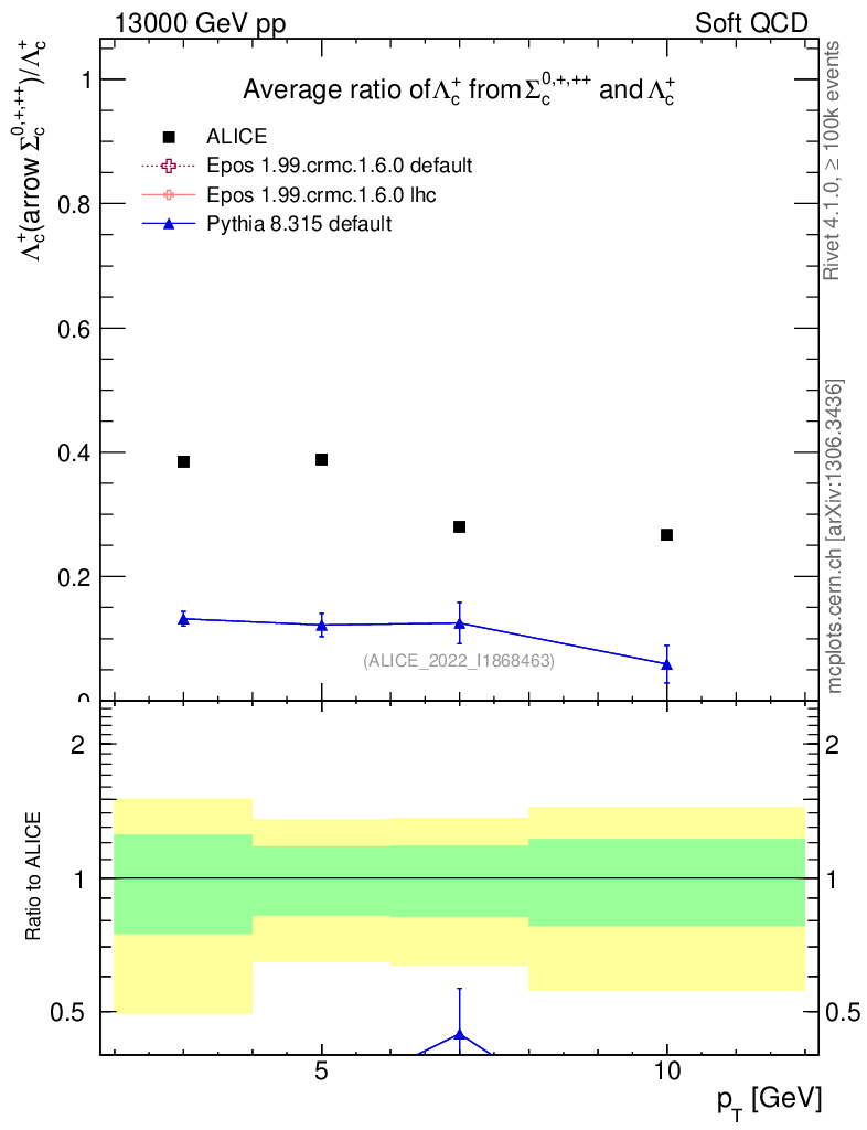 Soft QCD (inelastic) : Identified Particles : Ratios : Λc+ from Σc0,+,++/Λc+ vs pT