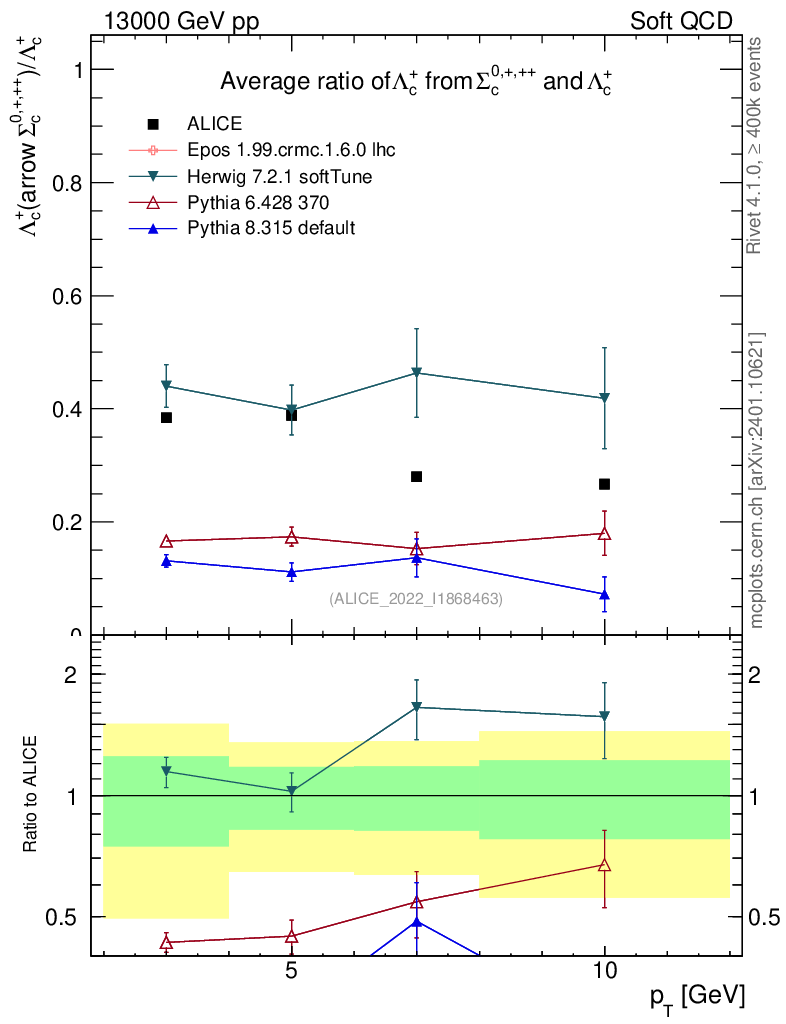Soft QCD (inelastic) : Identified Particles : Ratios : Λc+ from Σc0,+,++/Λc+ vs pT