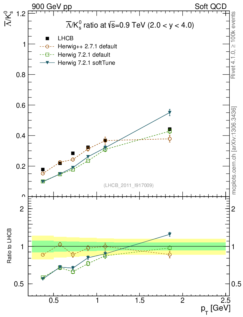 Soft QCD (inelastic) : Identified Particles : Ratios : Λbar/K0S vs pT