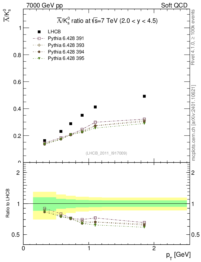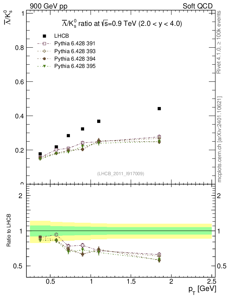 Soft QCD (inelastic) : Identified Particles : Ratios : Λbar/K0S vs pT