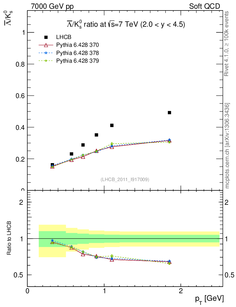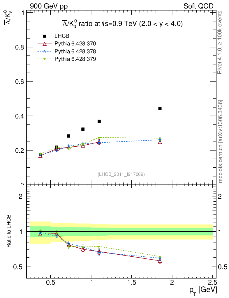 Soft QCD (inelastic) : Identified Particles : Ratios : Λbar/K0S vs pT