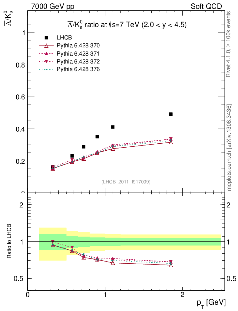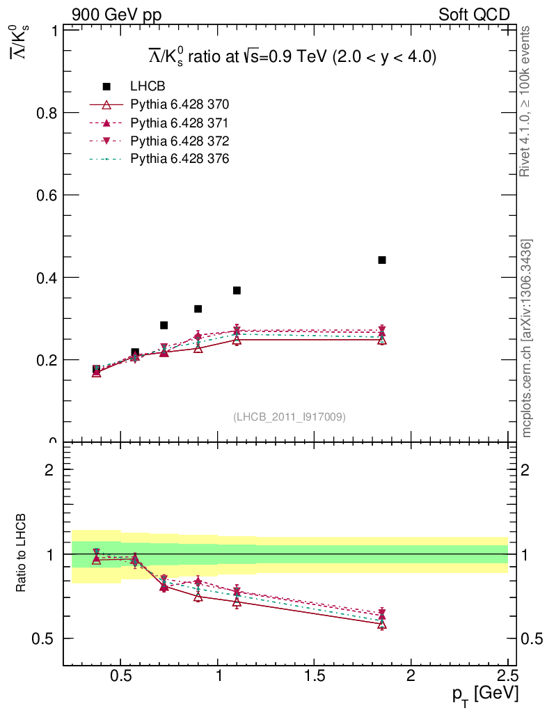 Soft QCD (inelastic) : Identified Particles : Ratios : Λbar/K0S vs pT
