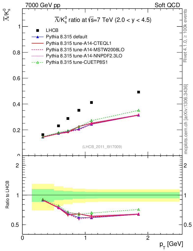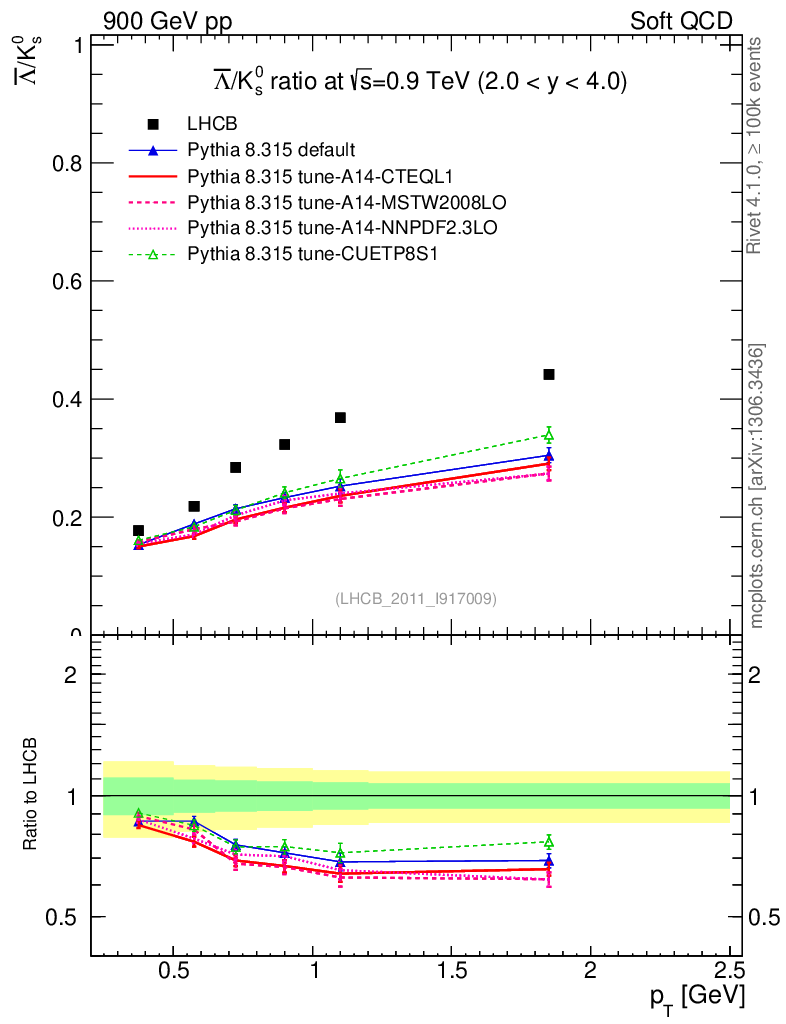 Soft QCD (inelastic) : Identified Particles : Ratios : Λbar/K0S vs pT