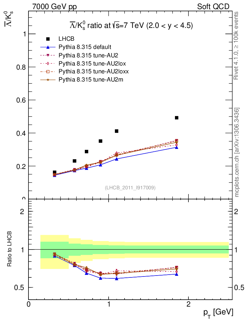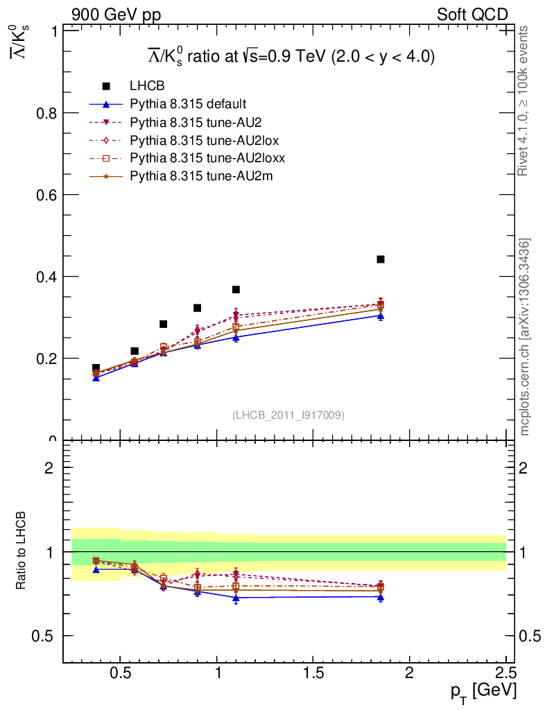 Soft QCD (inelastic) : Identified Particles : Ratios : Λbar/K0S vs pT