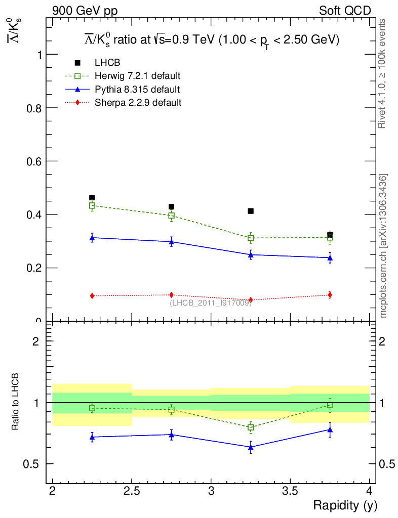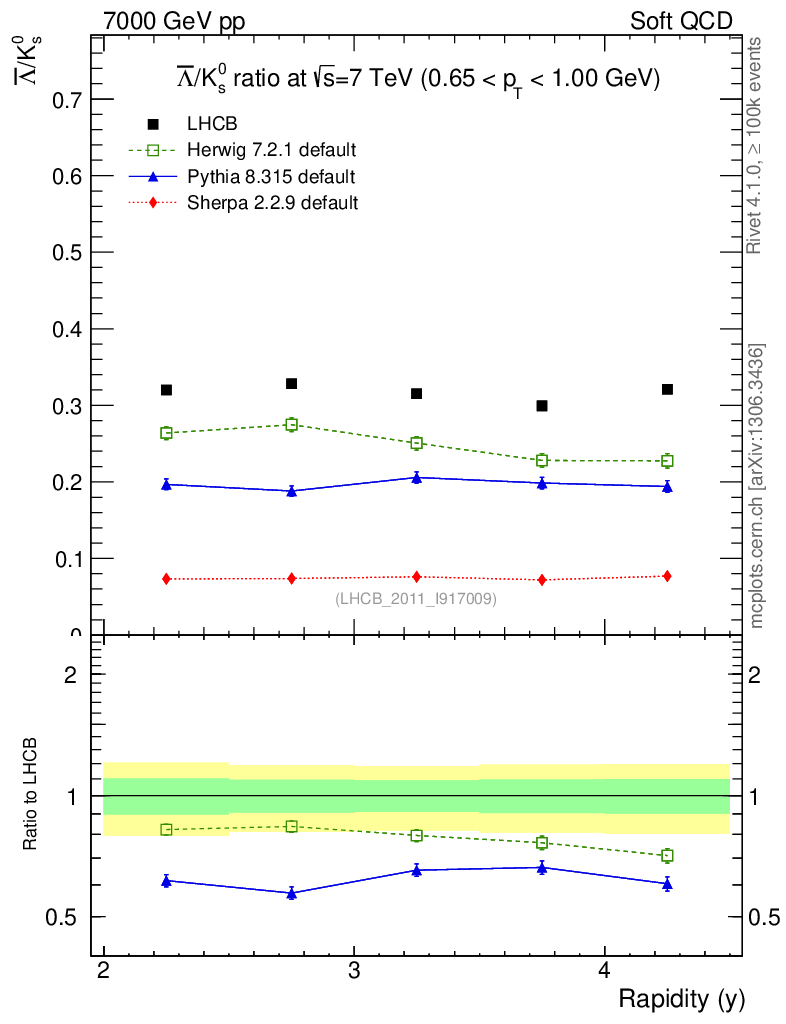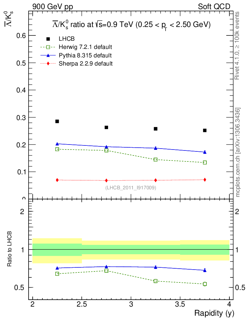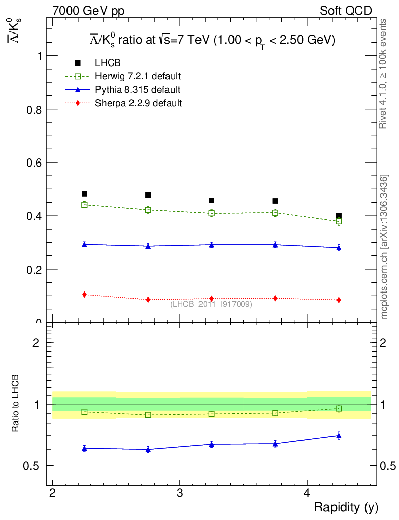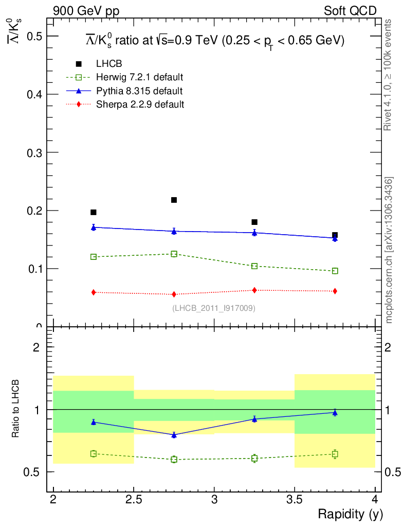 Soft QCD (inelastic) : Identified Particles : Ratios : Λbar/K0S vs |y|