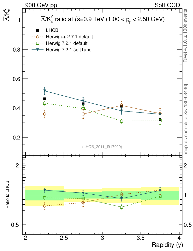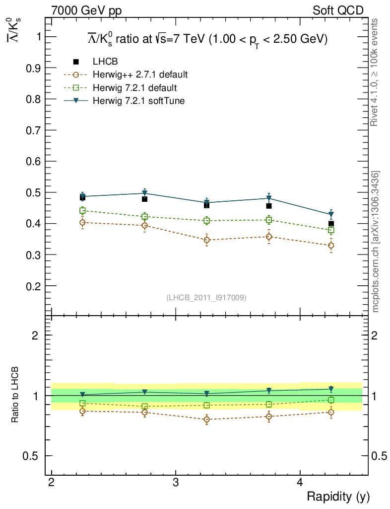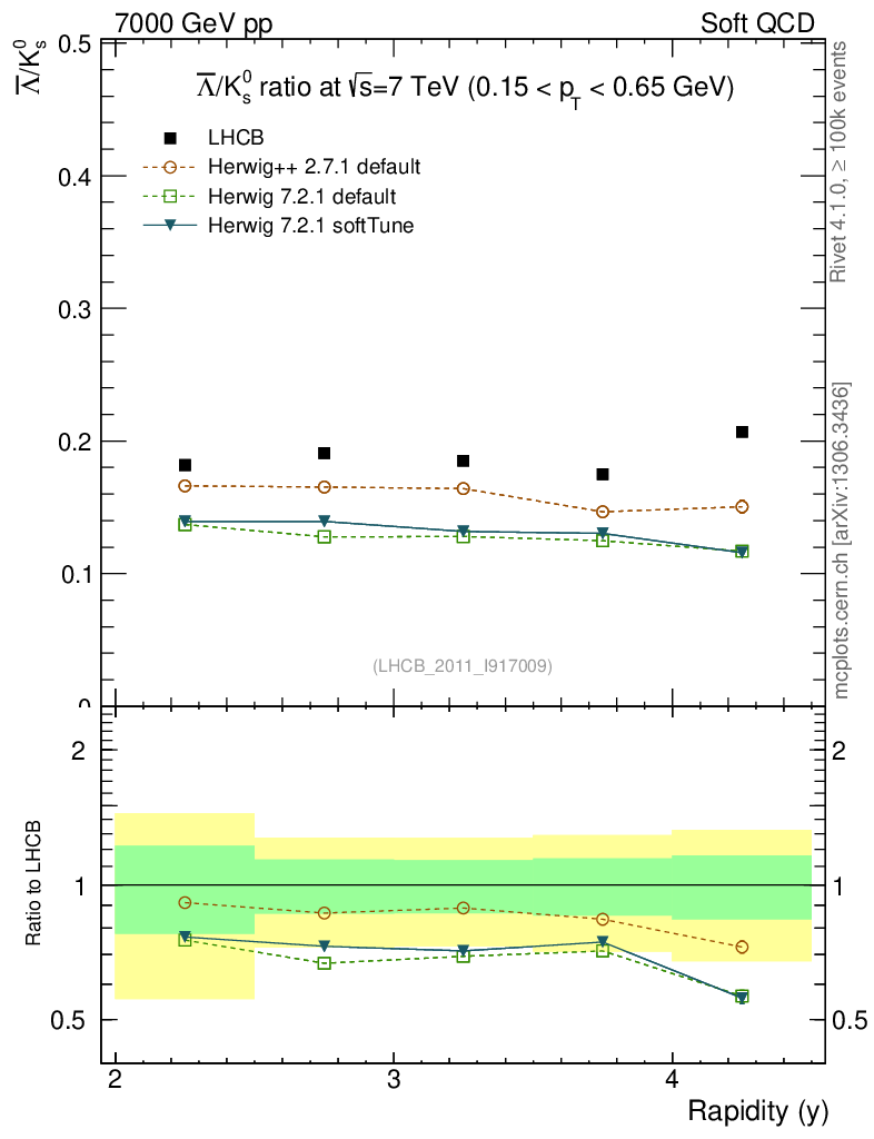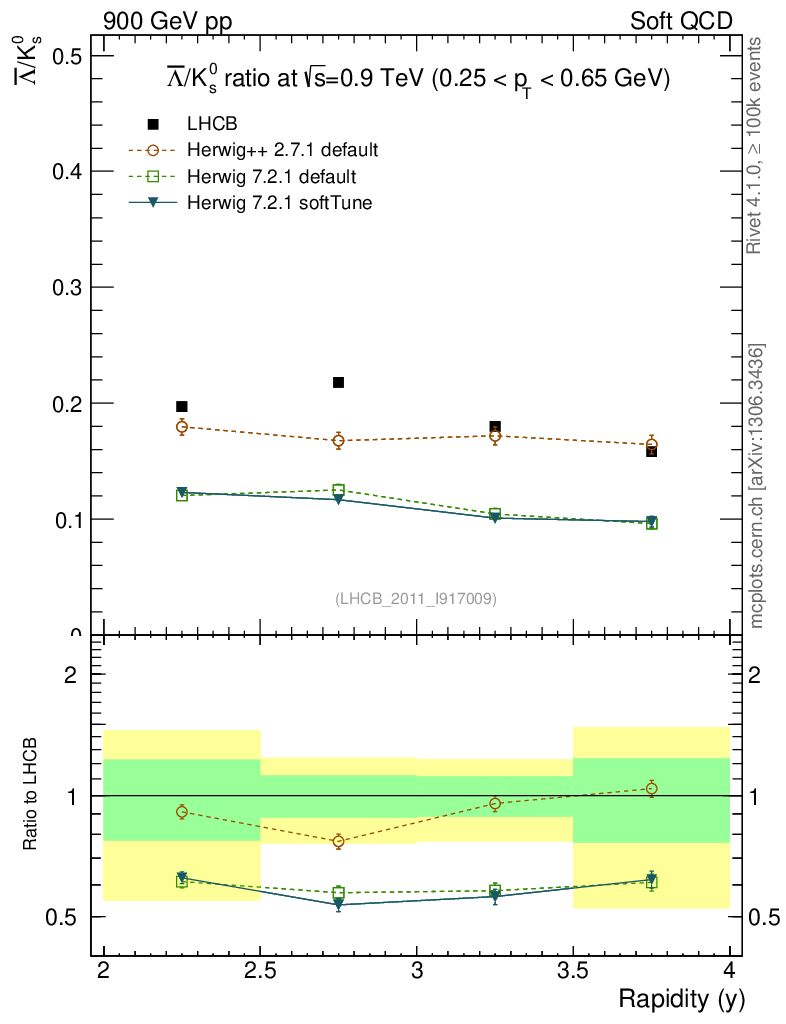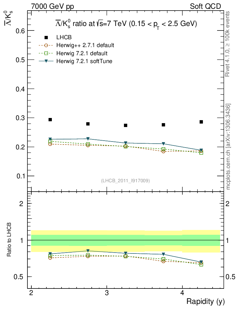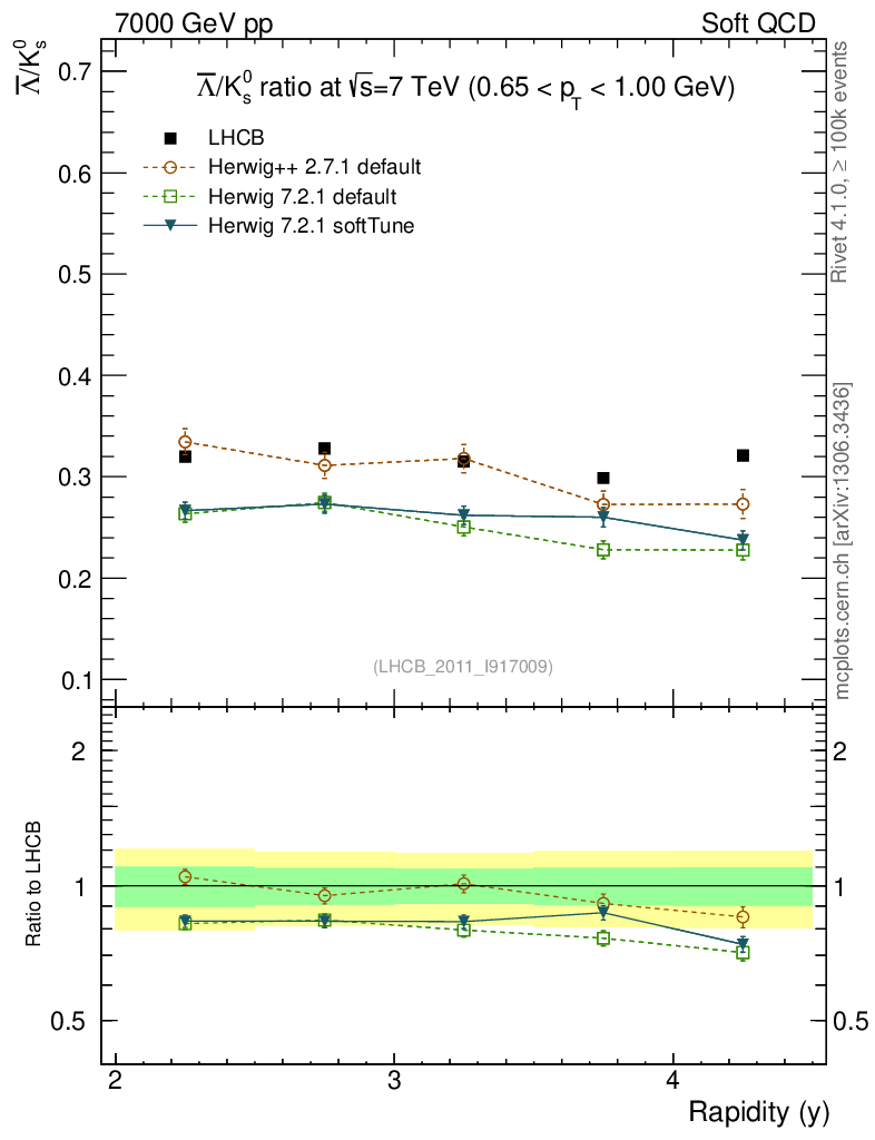 Soft QCD (inelastic) : Identified Particles : Ratios : Λbar/K0S vs |y|