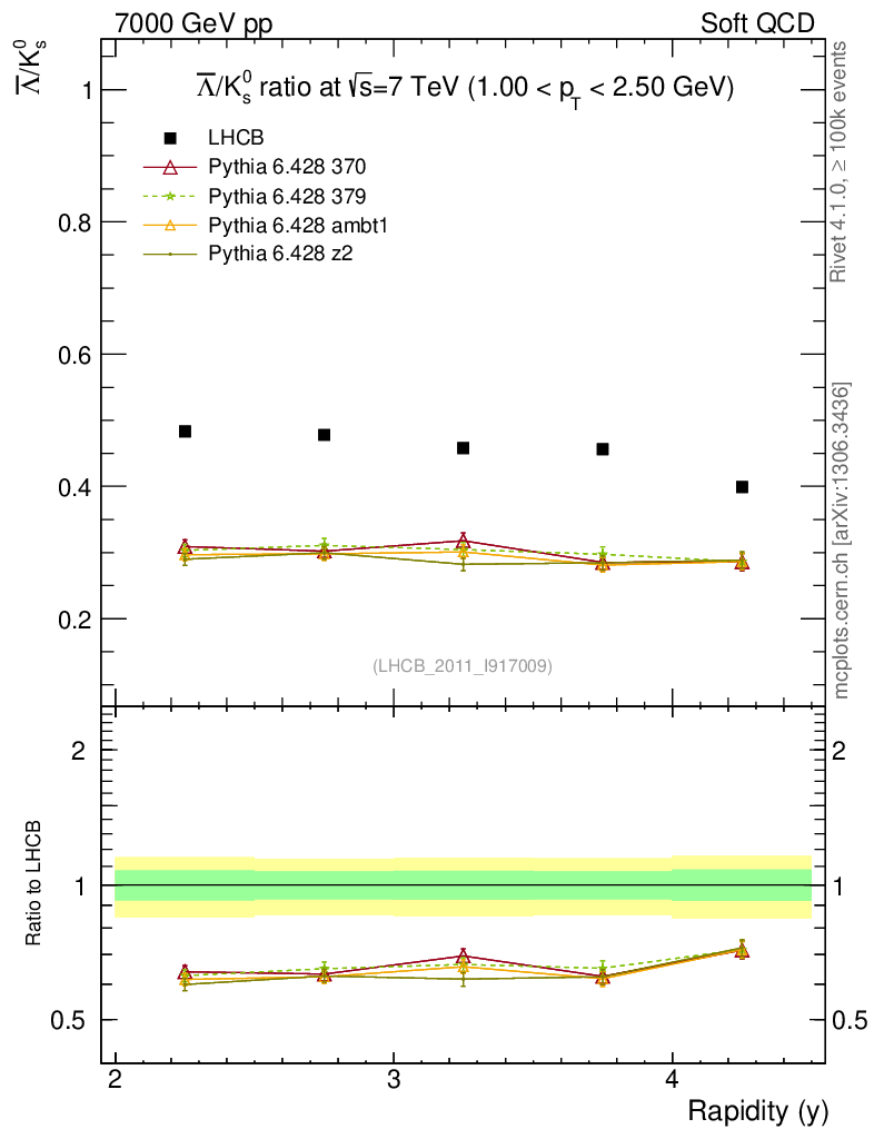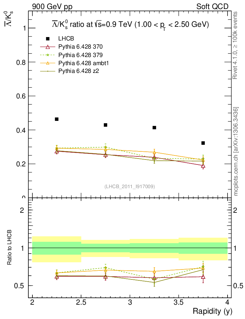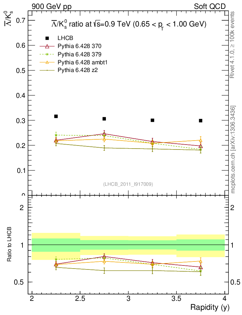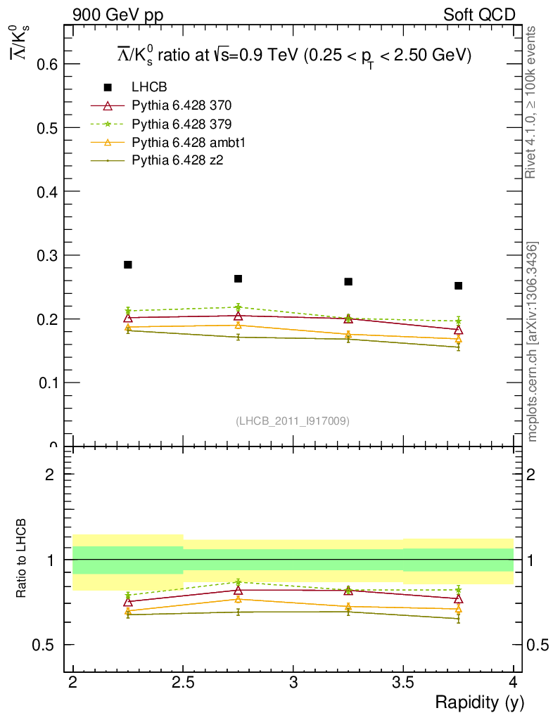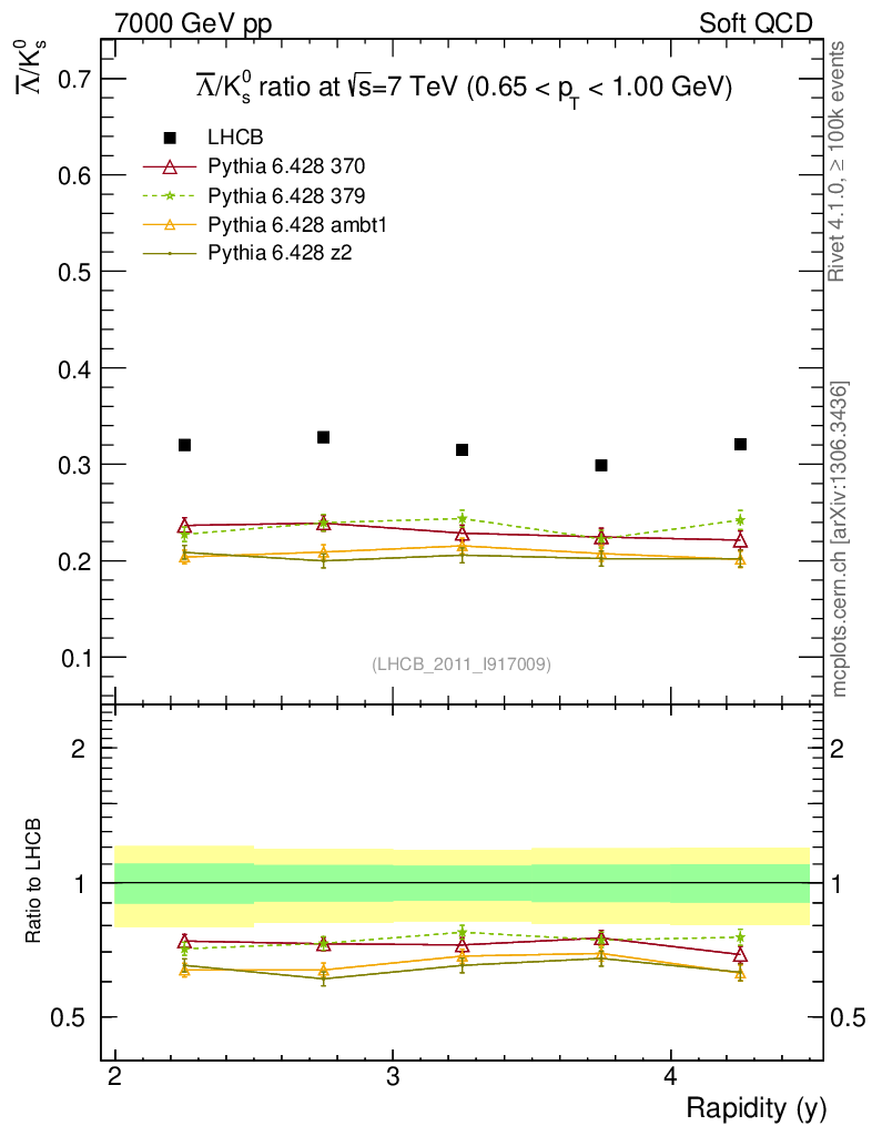Soft QCD (inelastic) : Identified Particles : Ratios : Λbar/K0S vs |y|