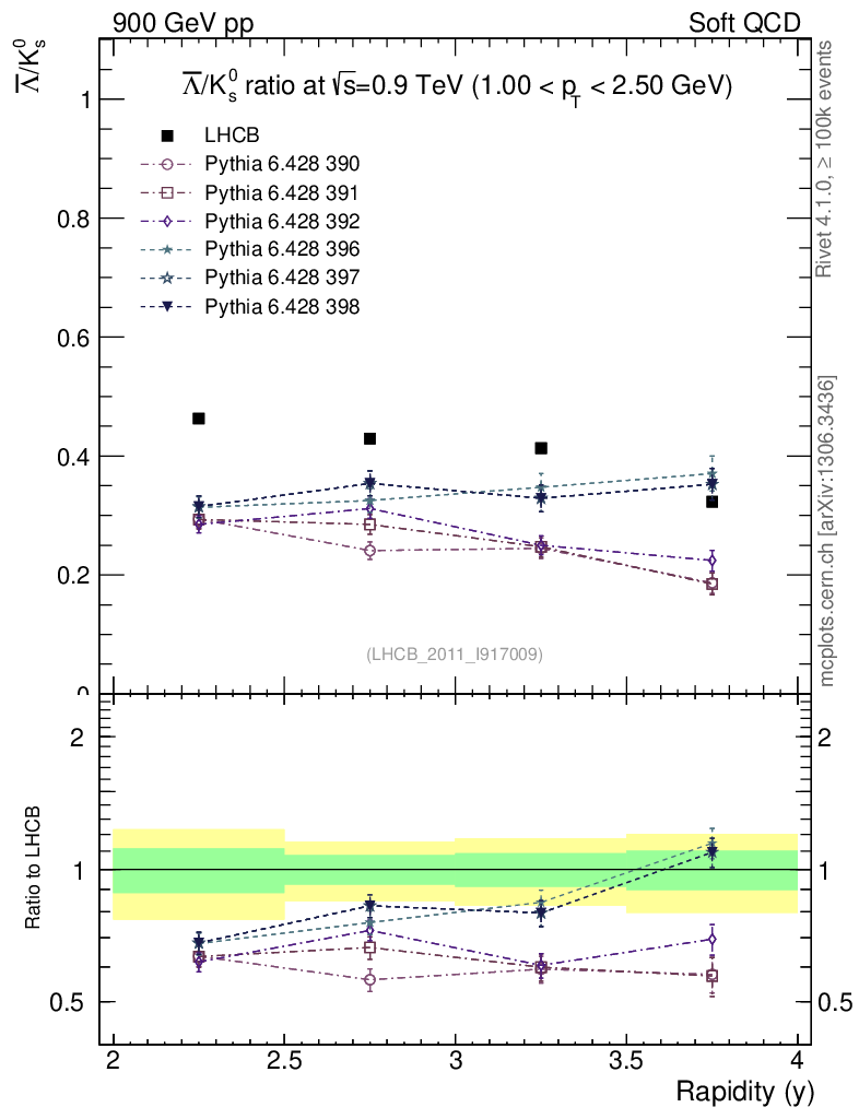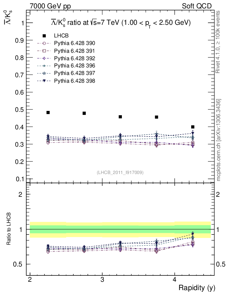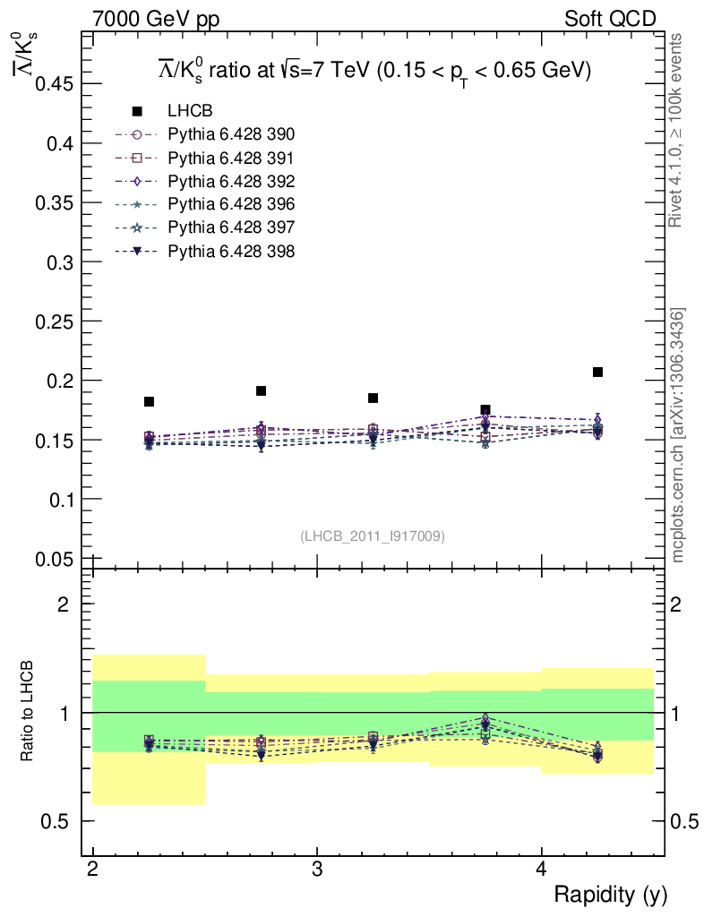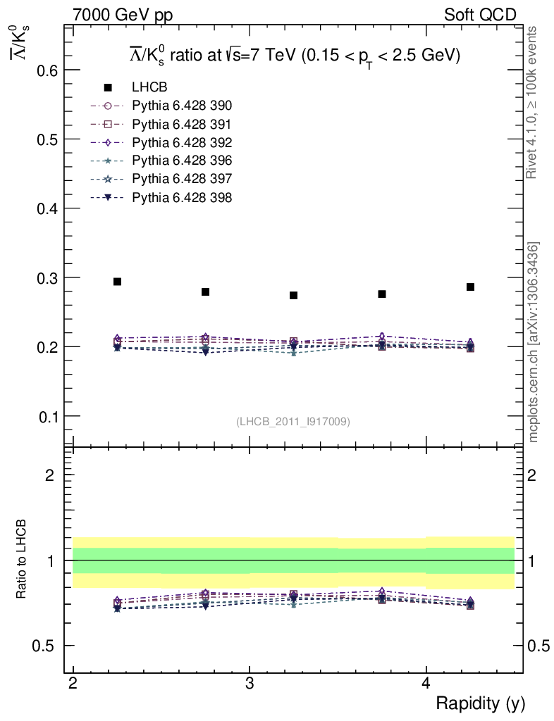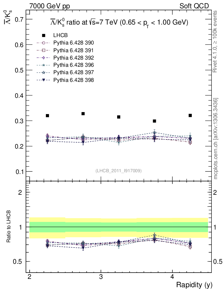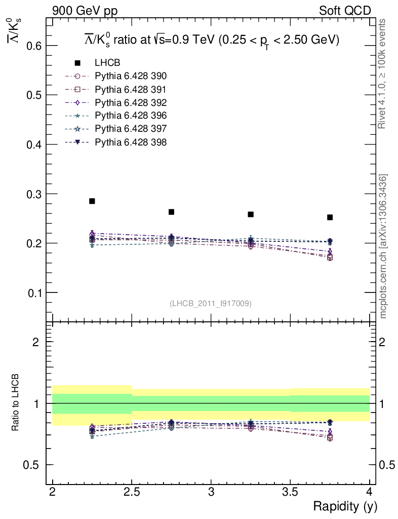 Soft QCD (inelastic) : Identified Particles : Ratios : Λbar/K0S vs |y|