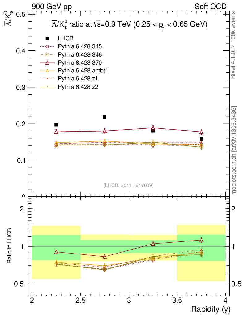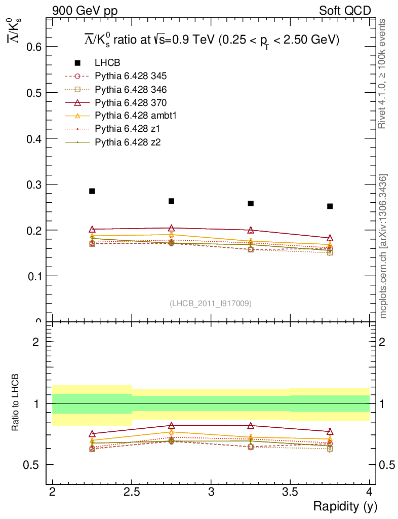 Soft QCD (inelastic) : Identified Particles : Ratios : Λbar/K0S vs |y|