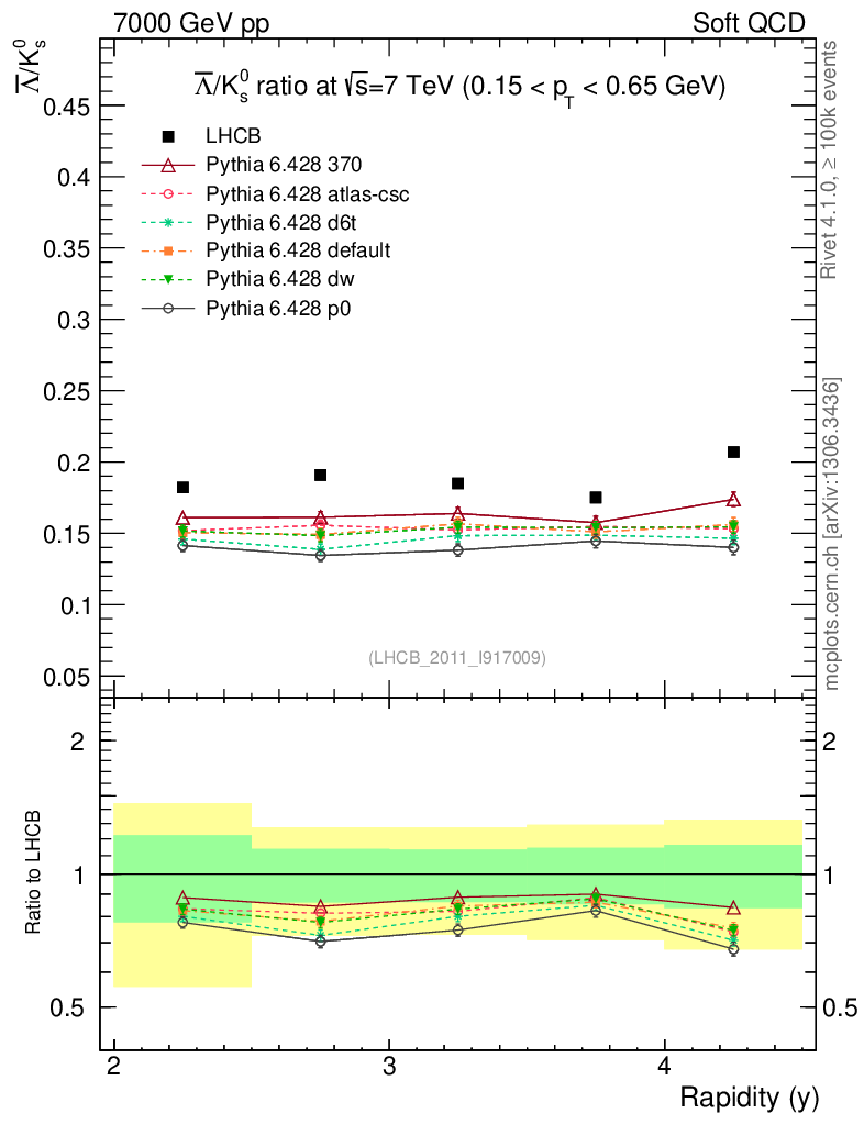 Soft QCD (inelastic) : Identified Particles : Ratios : Λbar/K0S vs |y|