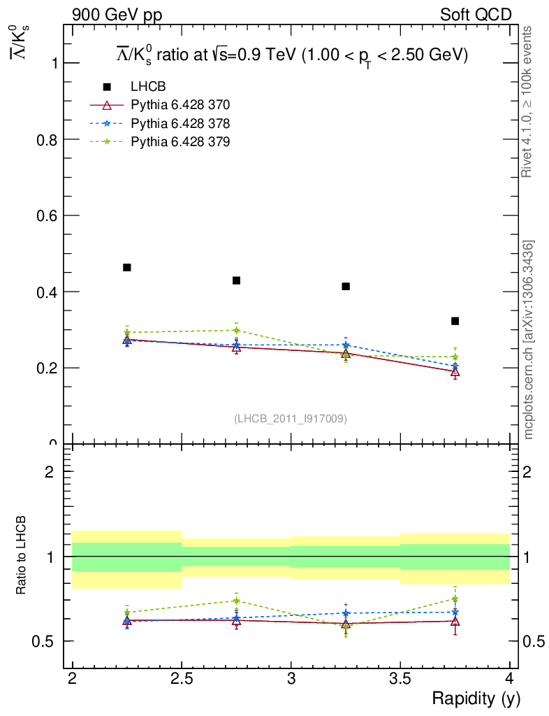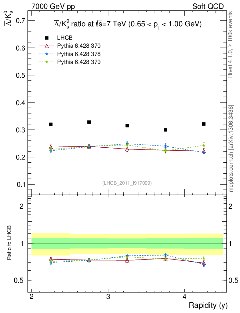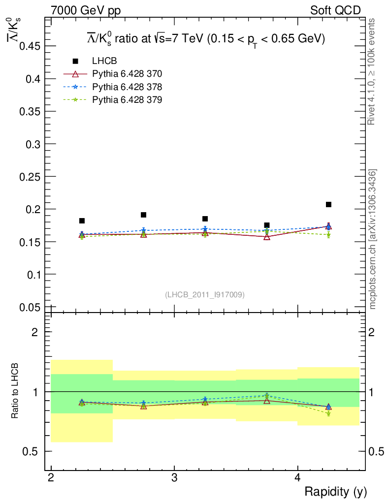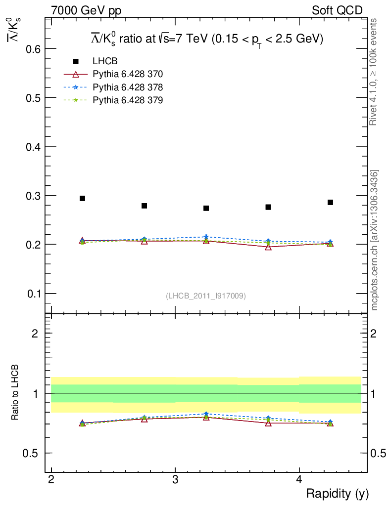 Soft QCD (inelastic) : Identified Particles : Ratios : Λbar/K0S vs |y|