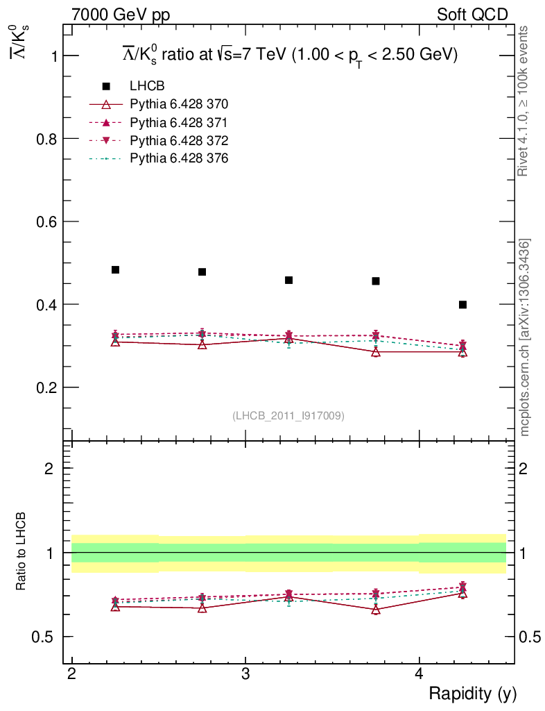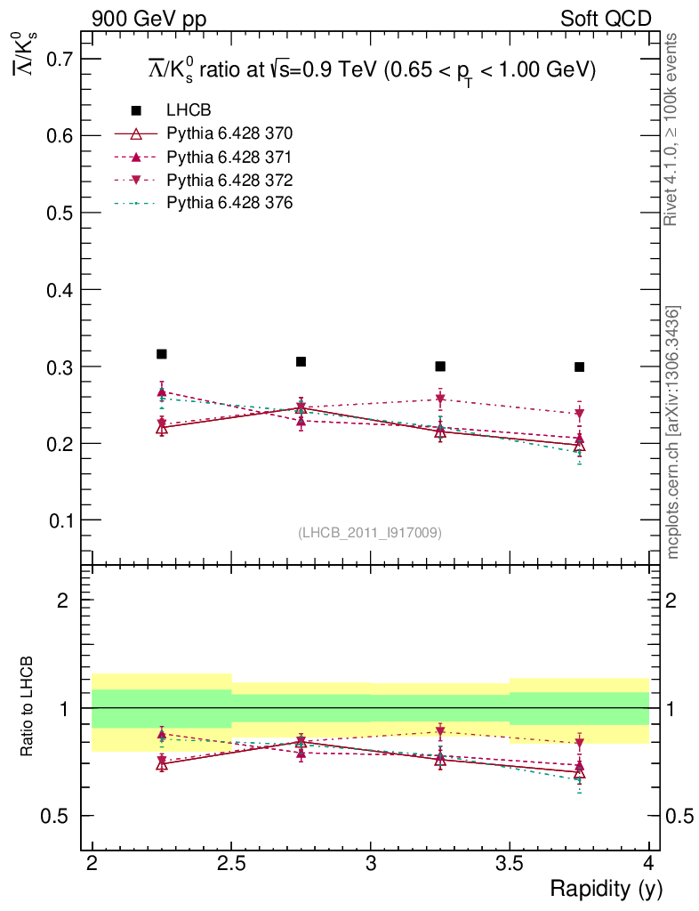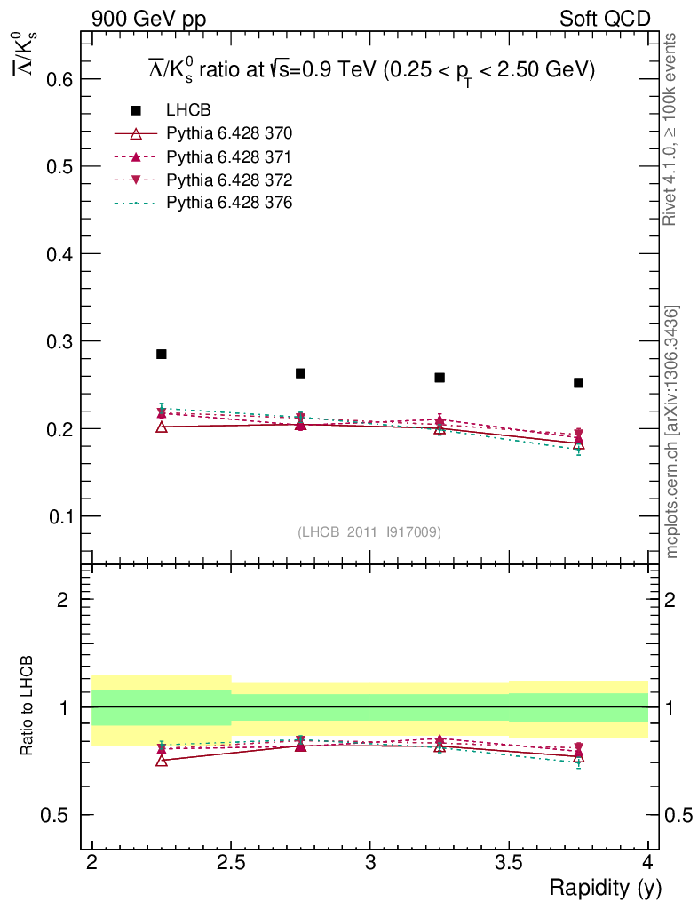 Soft QCD (inelastic) : Identified Particles : Ratios : Λbar/K0S vs |y|