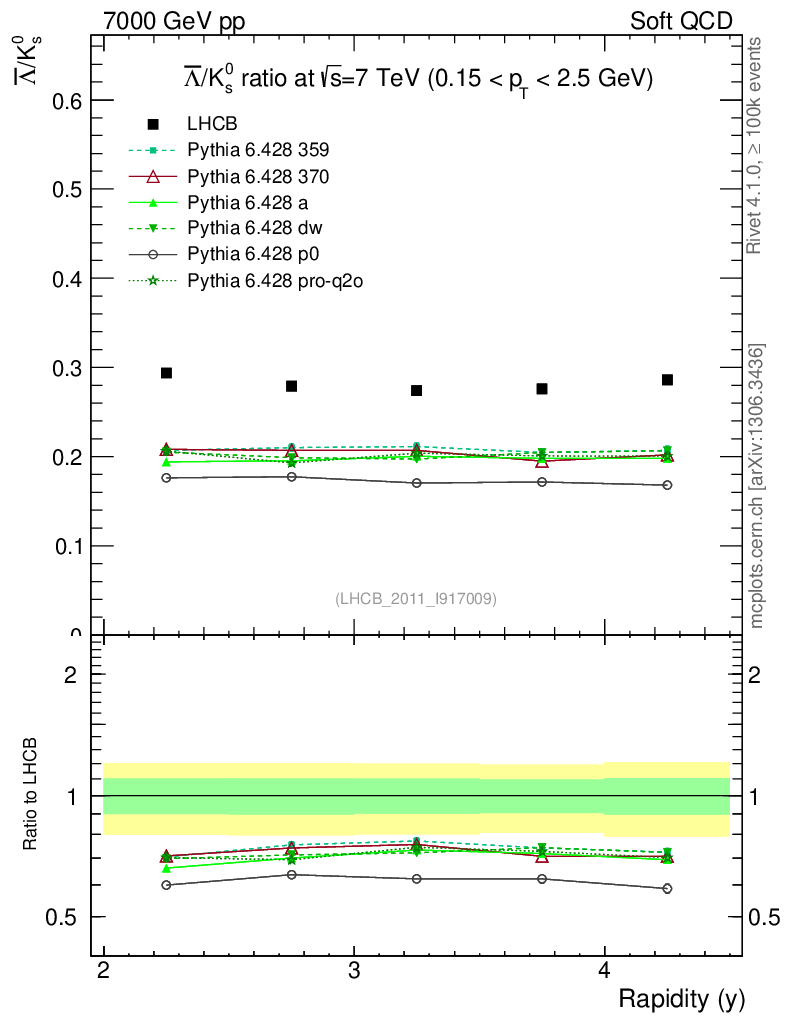 Soft QCD (inelastic) : Identified Particles : Ratios : Λbar/K0S vs |y|