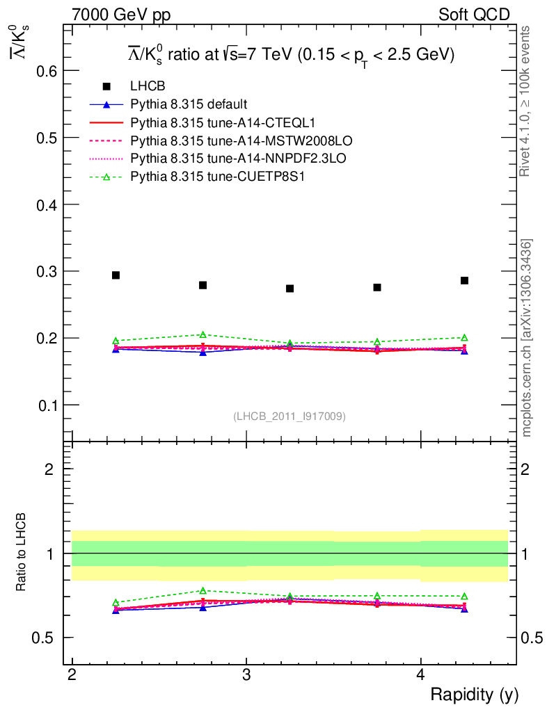Soft QCD (inelastic) : Identified Particles : Ratios : Λbar/K0S vs |y|
