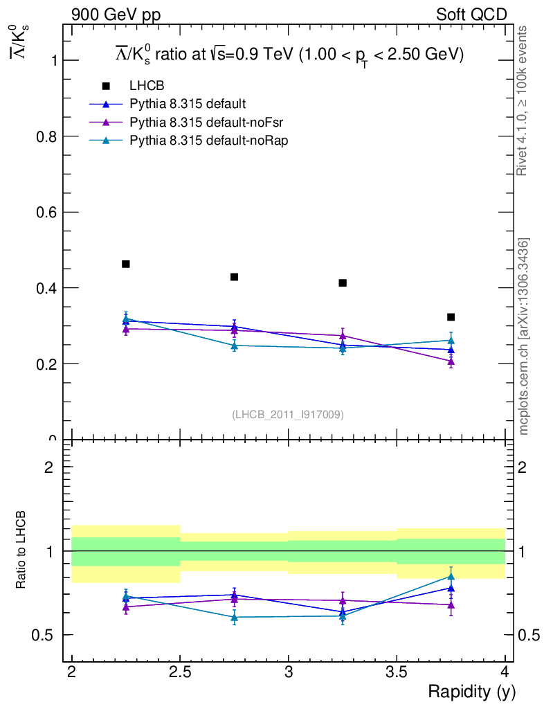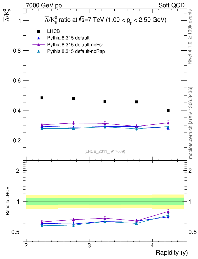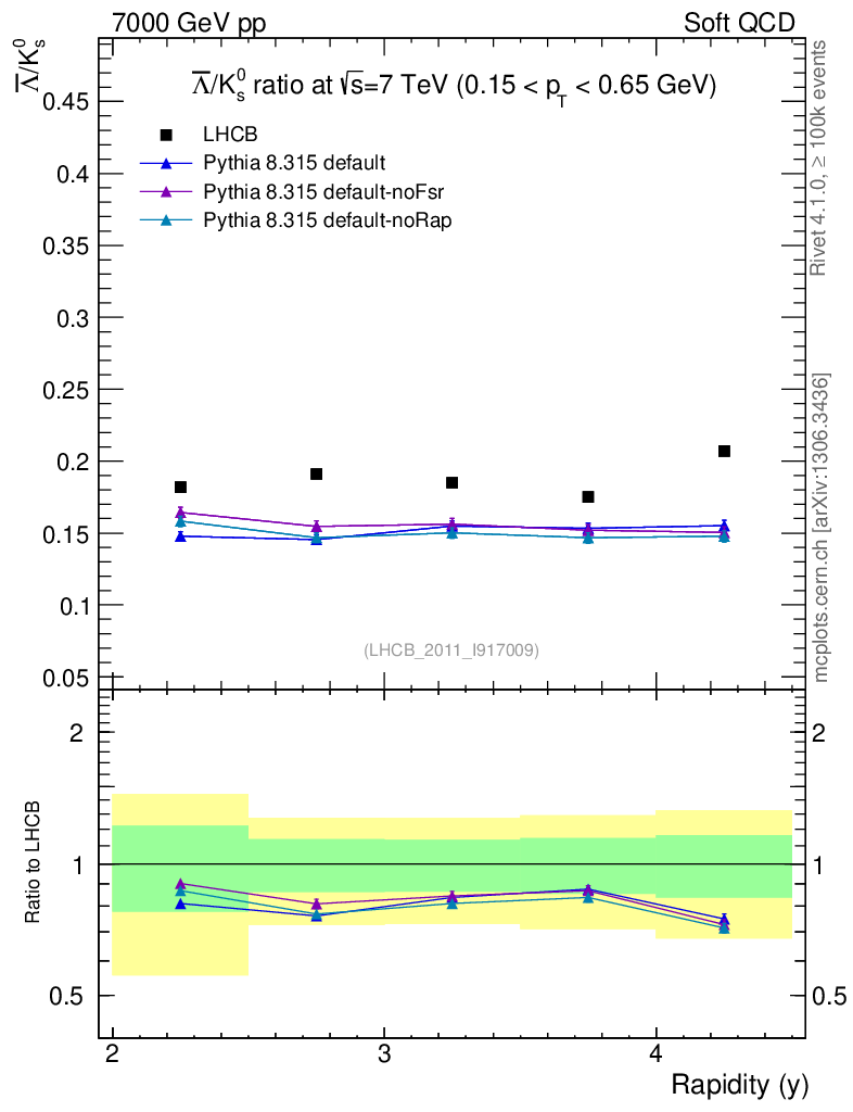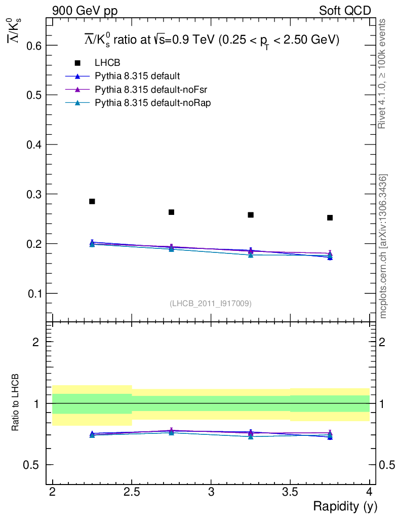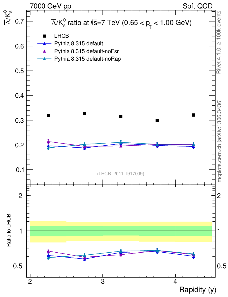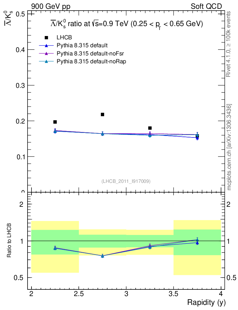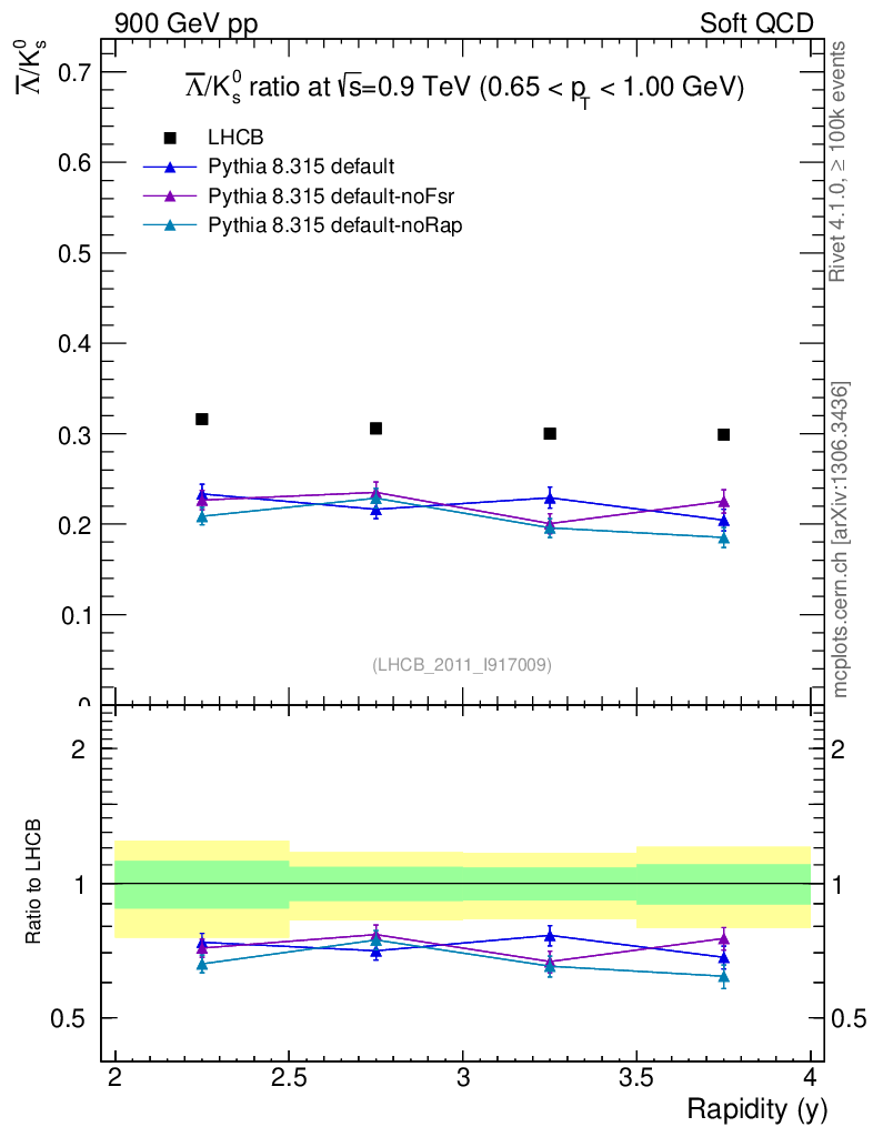 Soft QCD (inelastic) : Identified Particles : Ratios : Λbar/K0S vs |y|