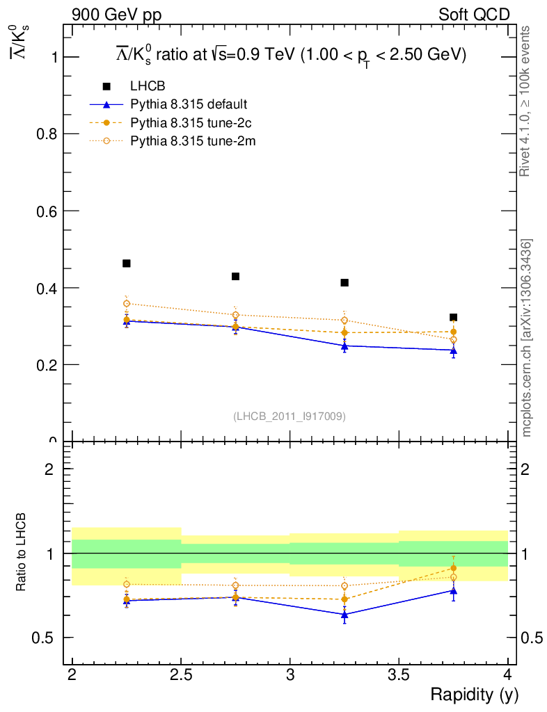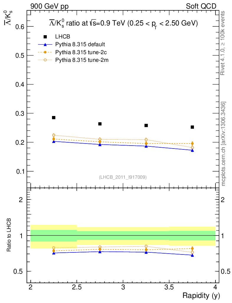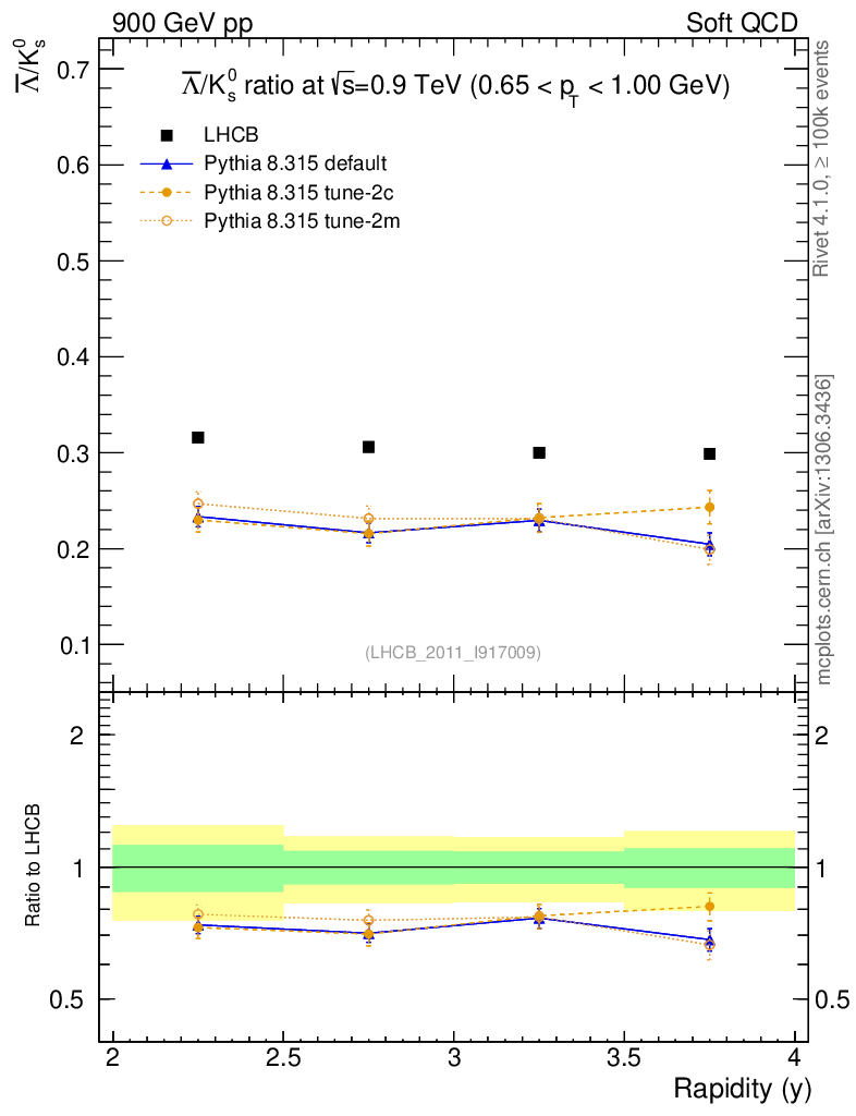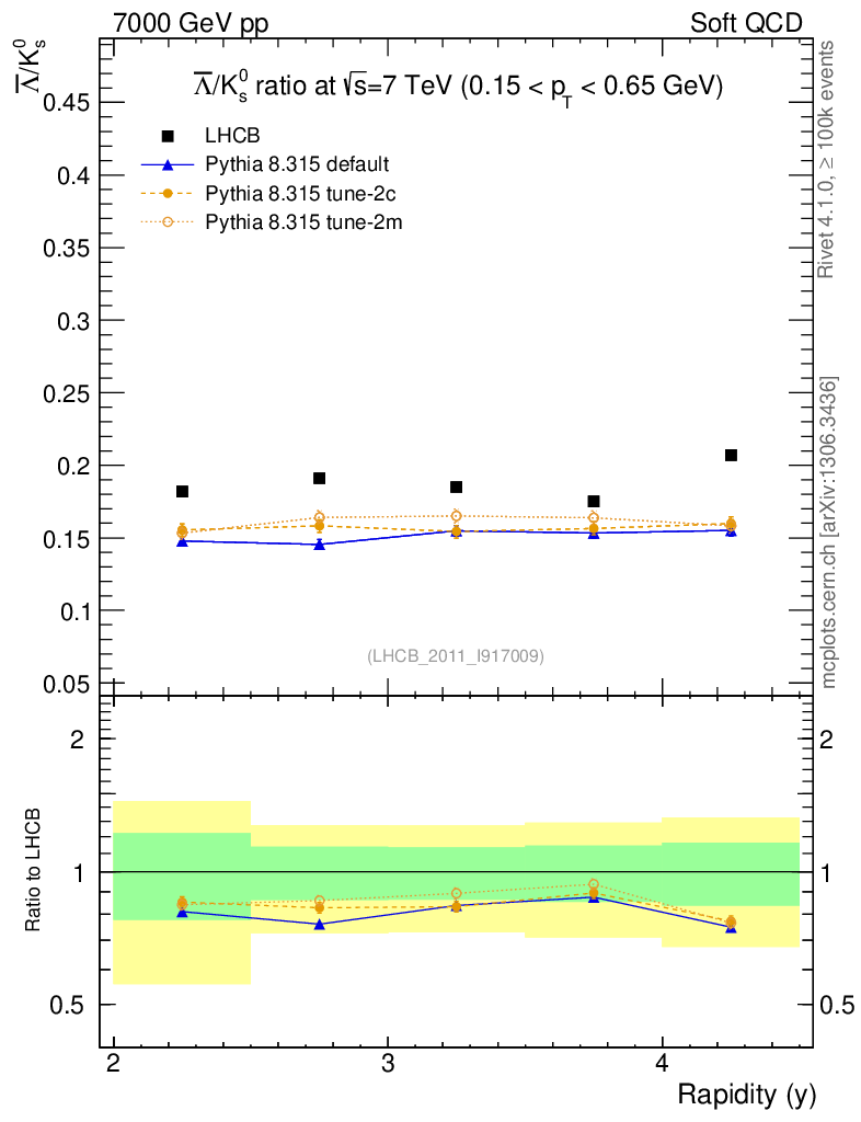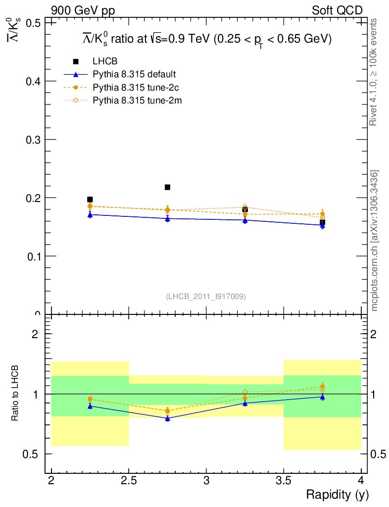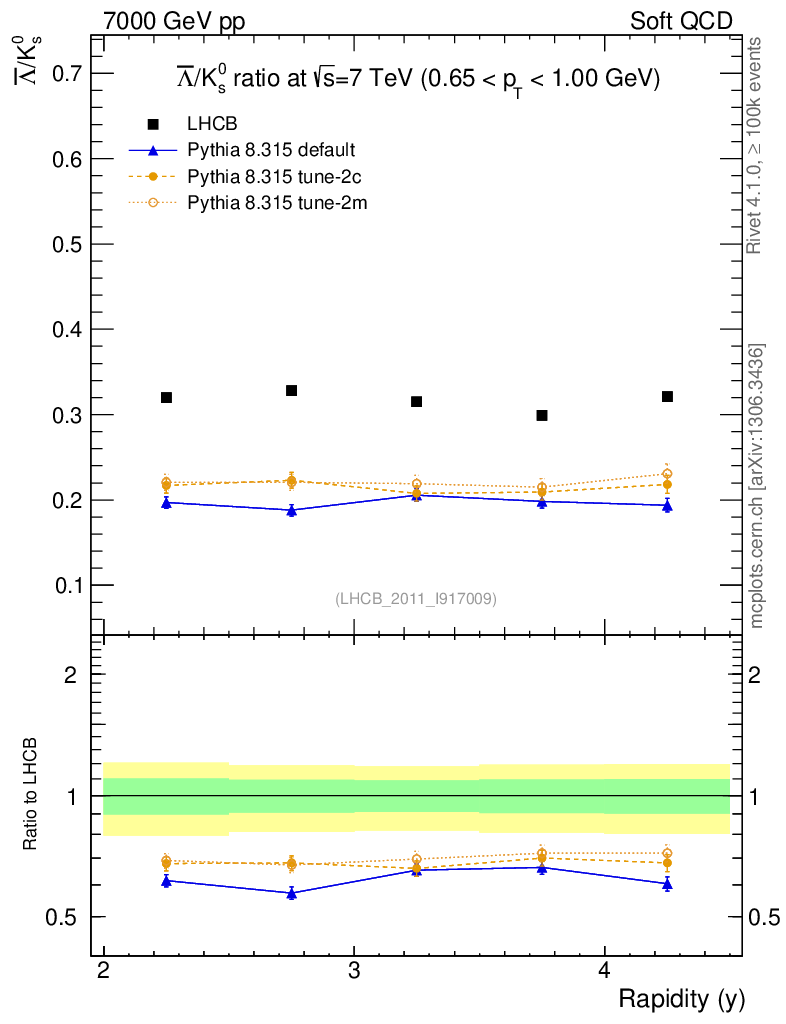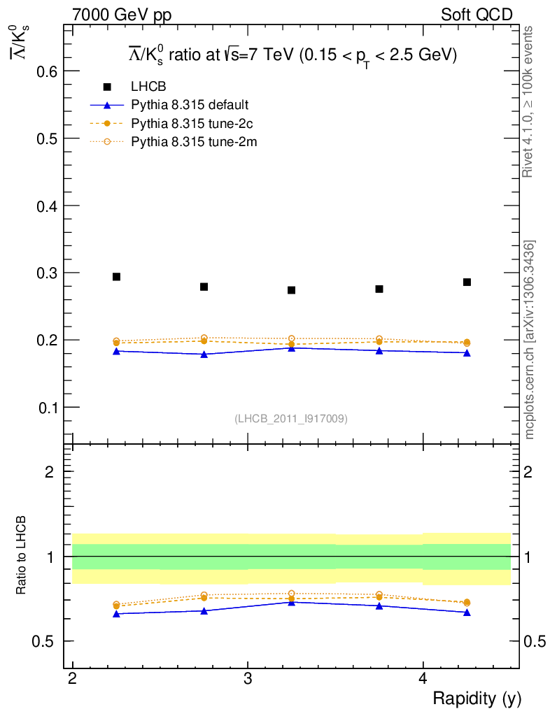 Soft QCD (inelastic) : Identified Particles : Ratios : Λbar/K0S vs |y|