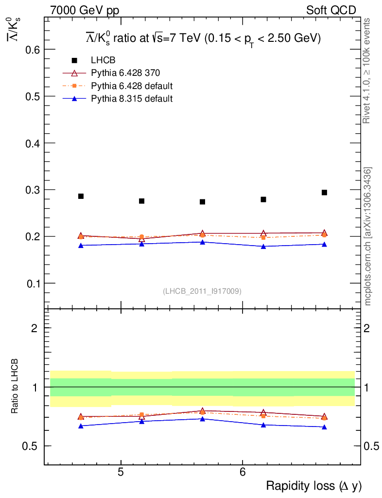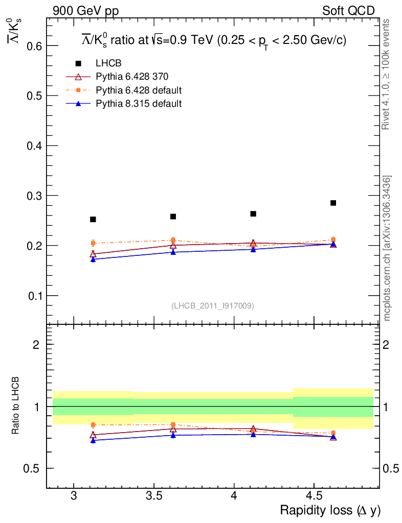Soft QCD (inelastic) : Identified Particles : Ratios : Λbar/K0S vs |Δy|