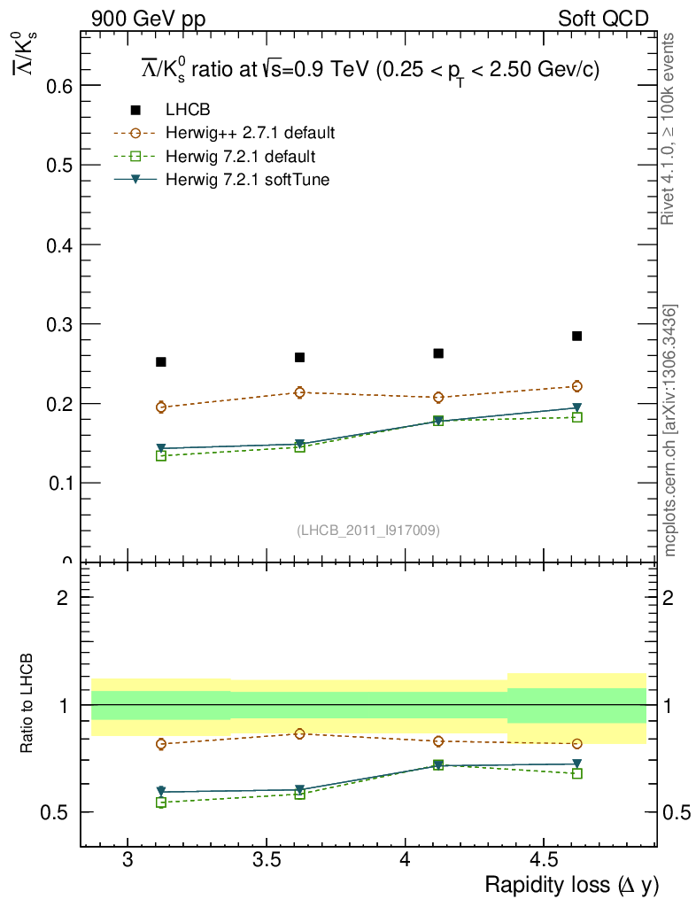 Soft QCD (inelastic) : Identified Particles : Ratios : Λbar/K0S vs |Δy|
