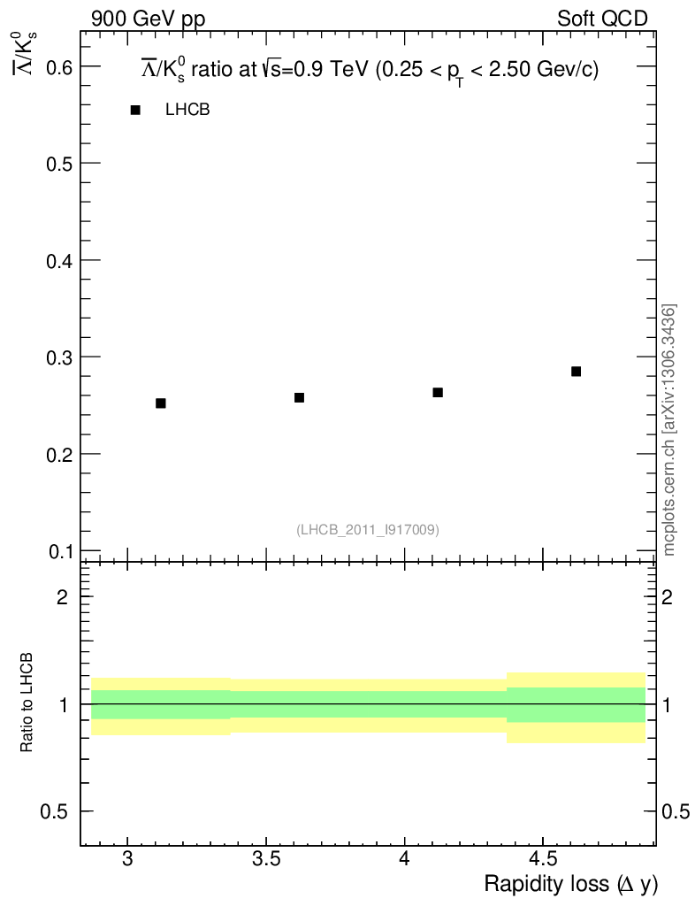 Soft QCD (inelastic) : Identified Particles : Ratios : Λbar/K0S vs |Δy|